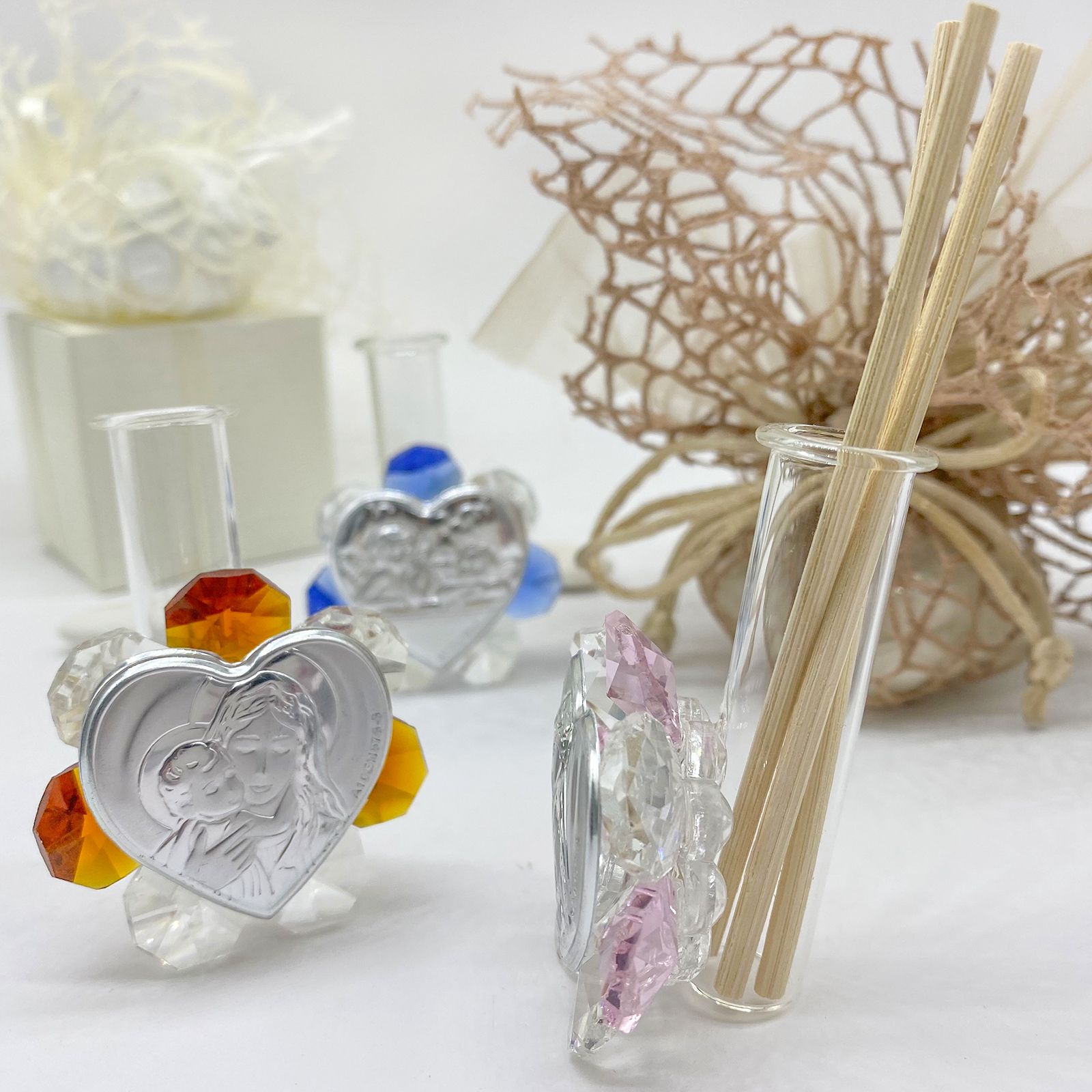 Scegli questi diffusori di aromi per le tue bomboniere sacre originali, proponendolo per bomboniere comunione o bomboniere battesimo regalando un oggetto utile ed elegante.