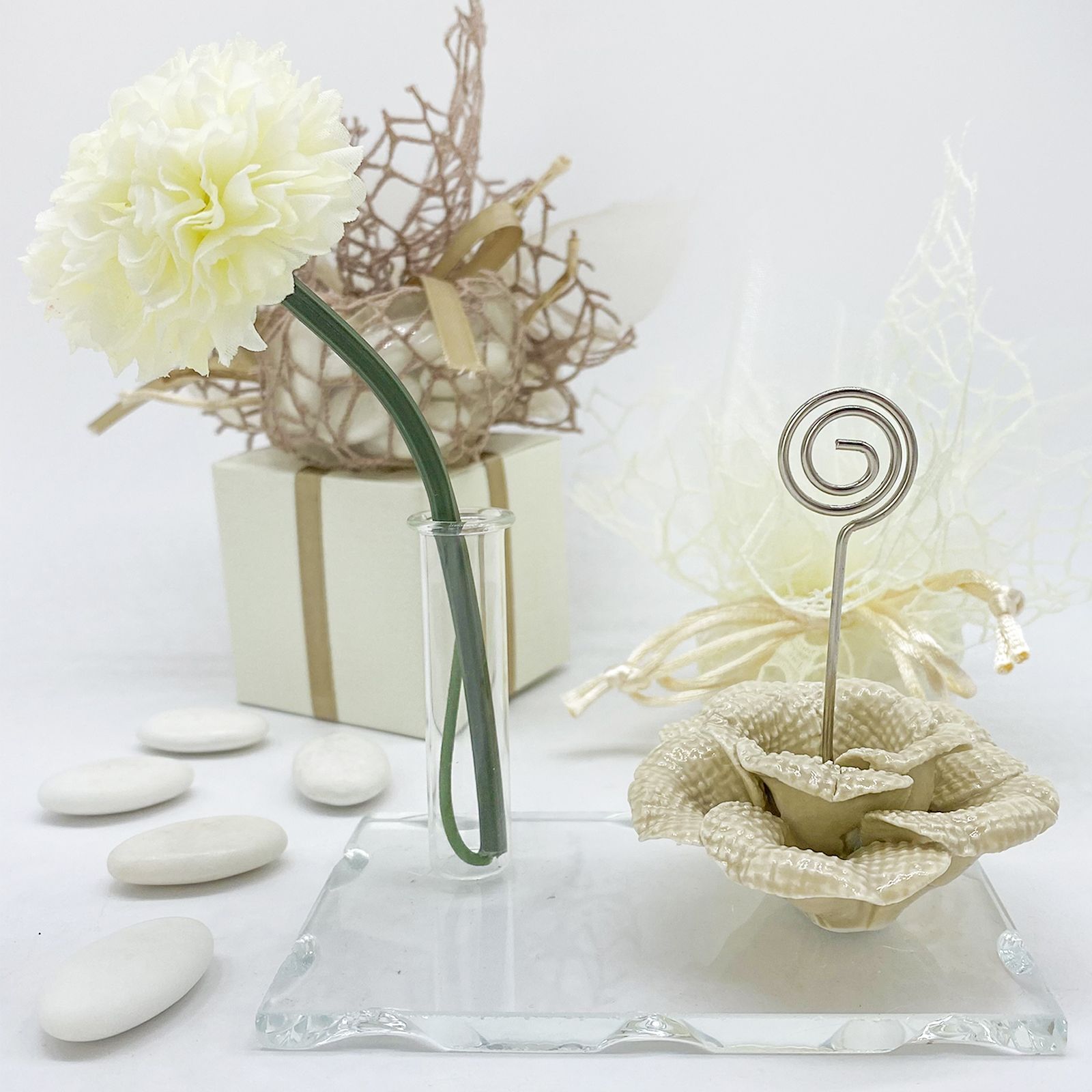 La rosa è da sempre un simbolo di amore, passione e bellezza. Offrire questa bomboniera con una rosa significa donare un pensiero carico di affetto e significato a chi la riceve.