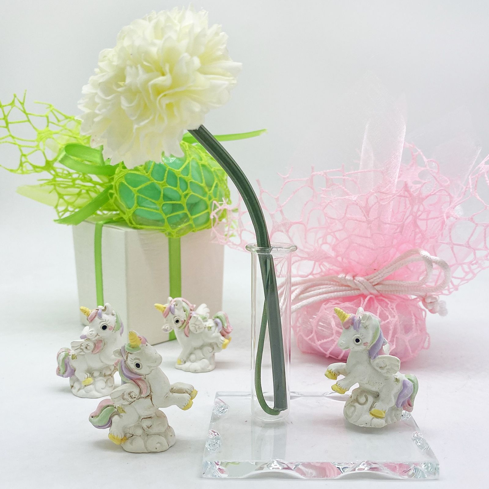 Questi diffusori non sono solo meravigliosi regali pratici, ma anche simboli di affetto e ricordi speciali. Scegliendo di condividere questo elegante e originale pensiero con i tuoi ospiti, trasmetti un messaggio di gratitudine e gioia che durerà nel tempo, portando con sé la magia e l'eleganza senza tempo degli unicorni.