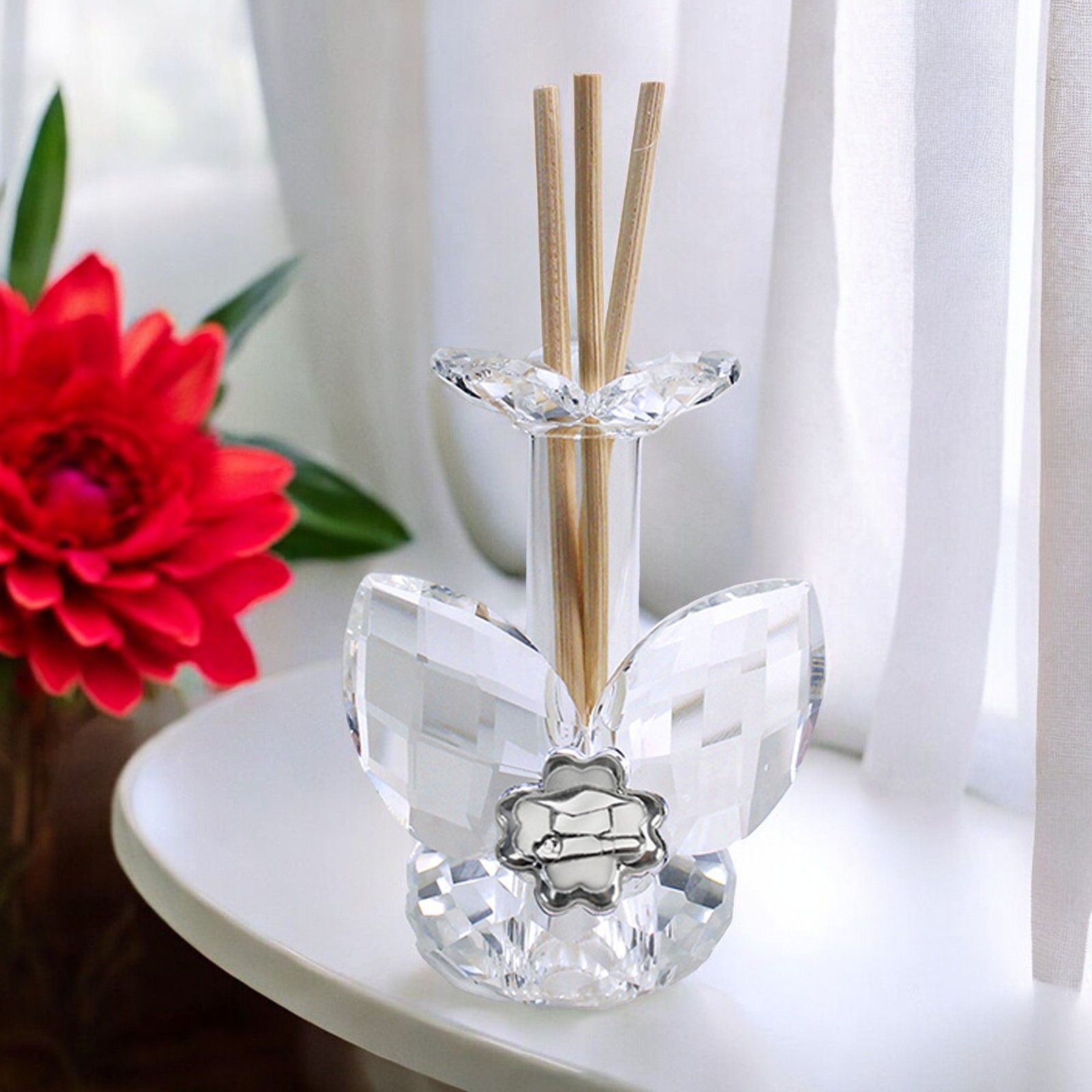 Il profumatore è decorato con un fiore a 3 petali in cristallo, base e decorazioni in cristallo, e un'icona portafortuna a forma di quadrifoglio in lamina argentata, raffigurante il tipico tocco del cappello dei laureandi e una pergamena, simboli indiscussi di successo e conoscenza.