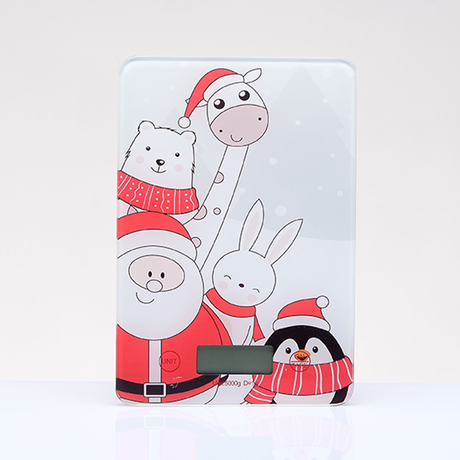 Stupisci con un regalo di Natale originale e funzionale! Questa bilancia digitale per alimenti unisce praticità e simpatia grazie alle adorabili raffigurazioni di Babbo Natale, pinguino, orsetto, coniglietto e giraffa con cappellino natalizio. Perfetta per aggiungere un tocco di allegria in cucina durante le festività.