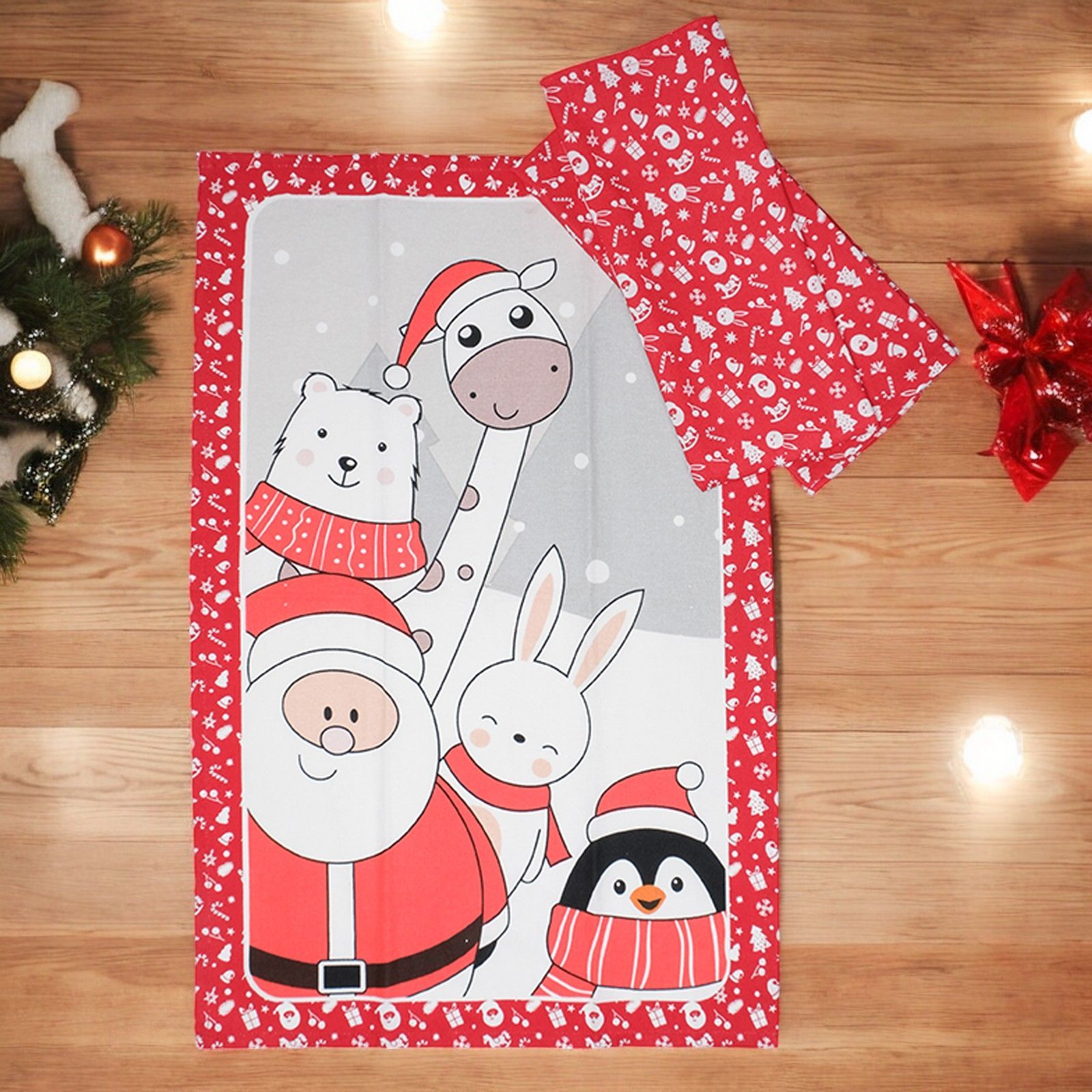 Porta l'atmosfera magica del Natale nella tua cucina con questi 3 canovacci con stampa Babbo Natale. Realizzati in morbido cotone, saranno perfetti per addobbare la tua casa e rendere ogni momento ancora più speciale.