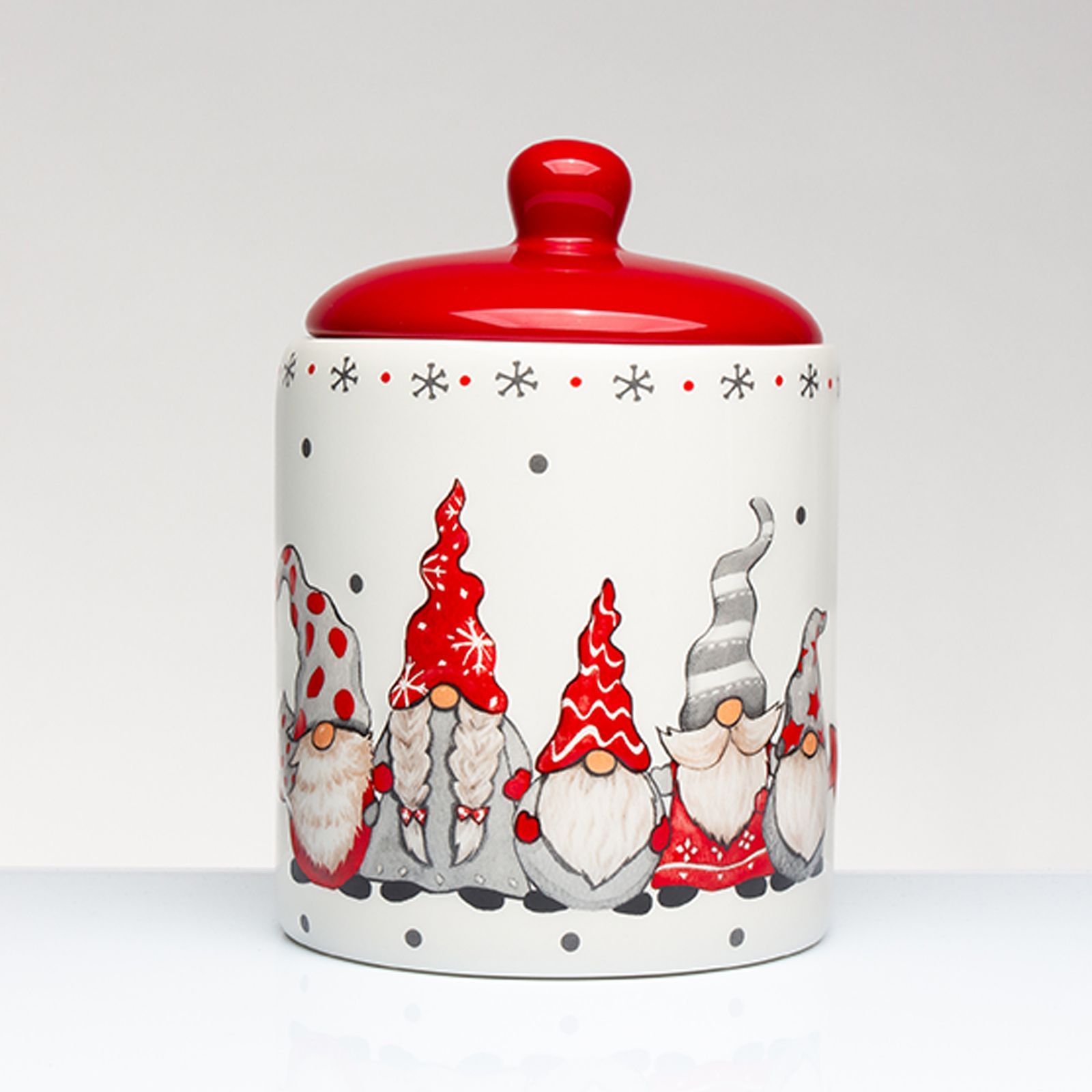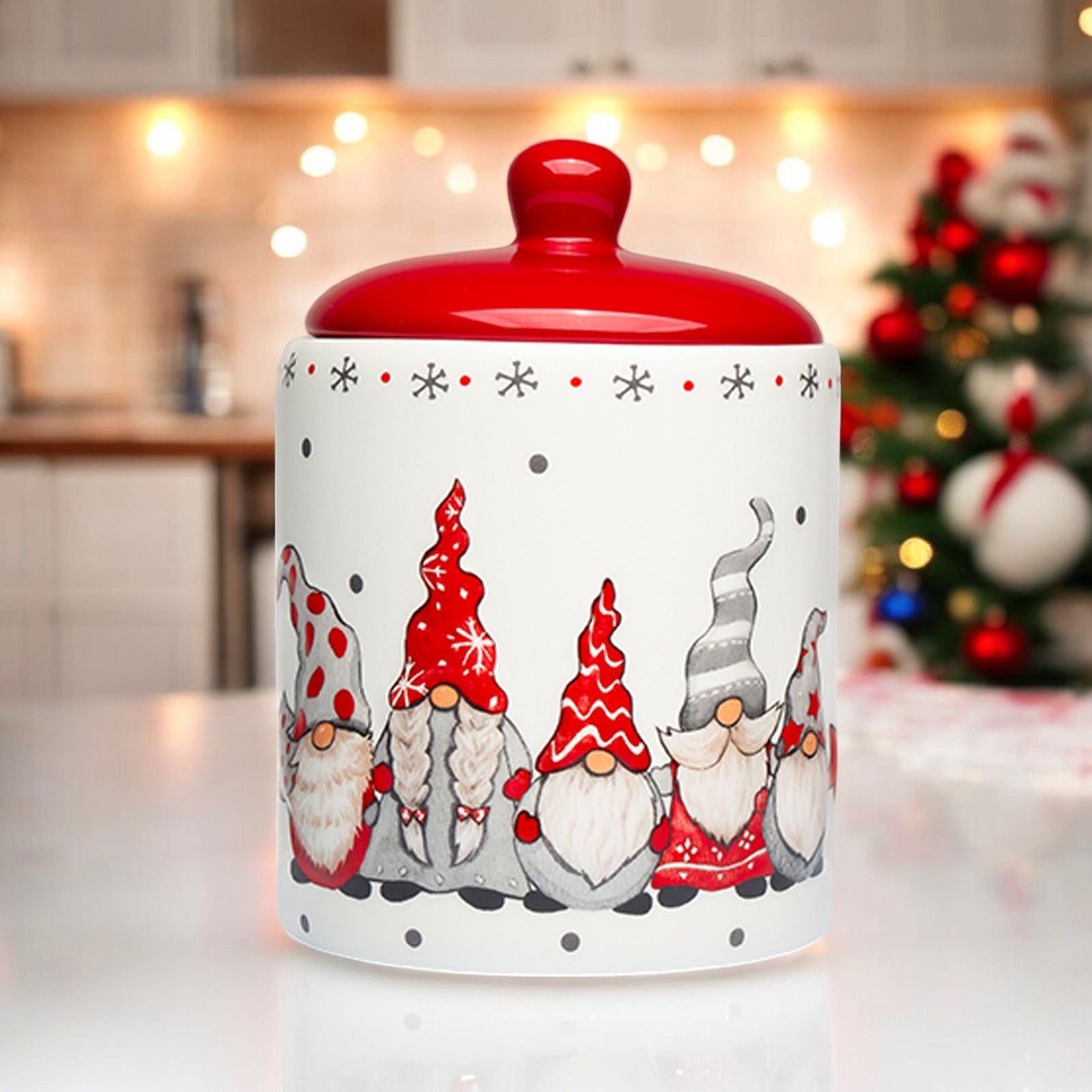 Acquista subito la biscottiera con raffigurazione di gnomi abbracciati e preparati a vivere un Natale indimenticabile!