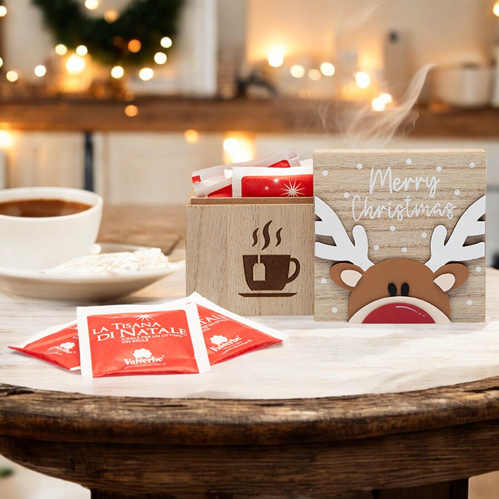 Non perdere l'opportunità di regalare questa splendida scatola in legno porta infusi. È il regalo perfetto per la tua amica, la tua mamma o chiunque ami il Natale e le sorprese speciali. Acquista ora e fai felice chi ami!