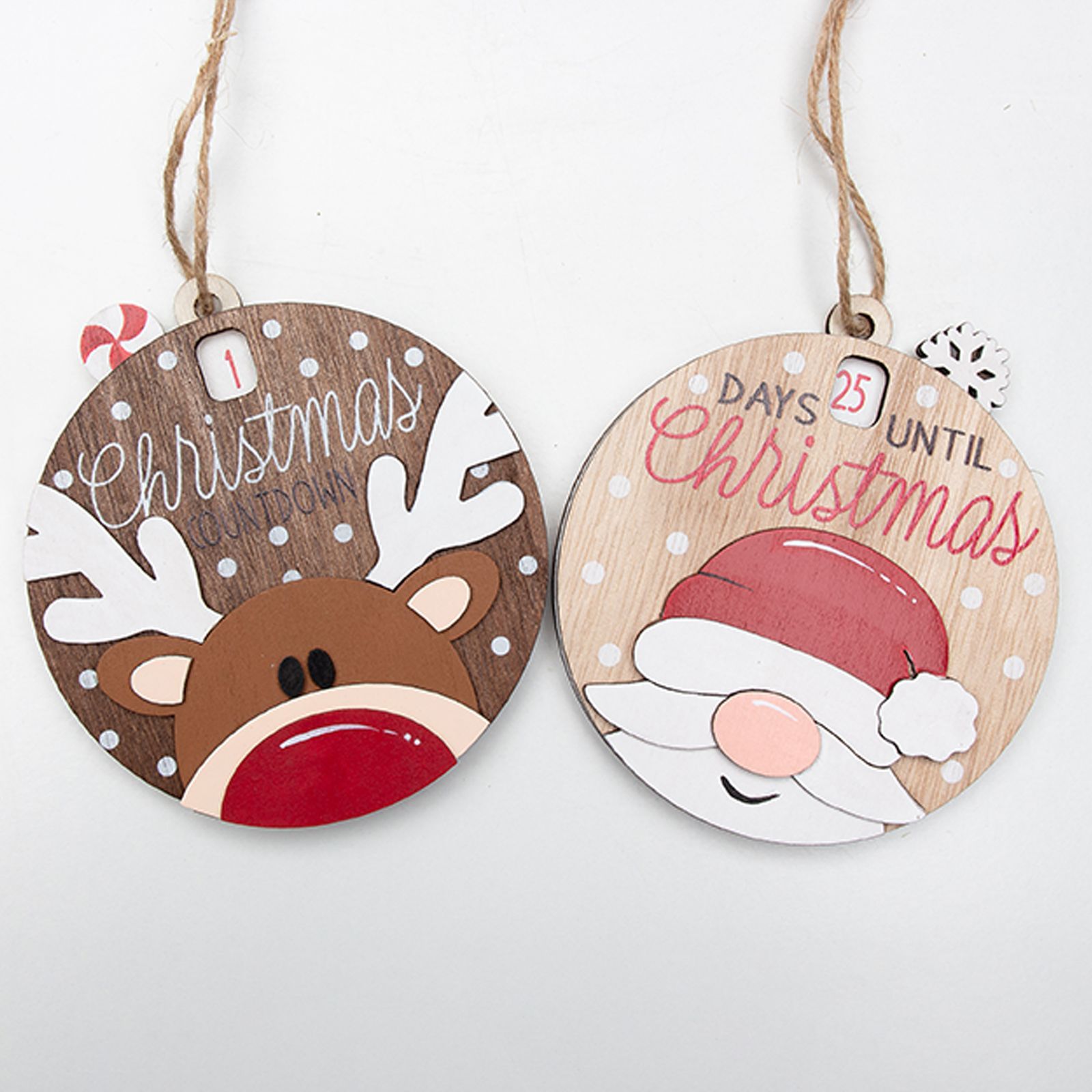 Il Christmas Countdown è un originale articolo natalizio che ti permette di seguire giorno dopo giorno l'avvicinarsi del Natale. Realizzato in legno e decorato con due simpatici soggetti assortiti, tra cui Babbo Natale e una renna, questo conto alla rovescia è perfetto per creare l'atmosfera magica delle festività.