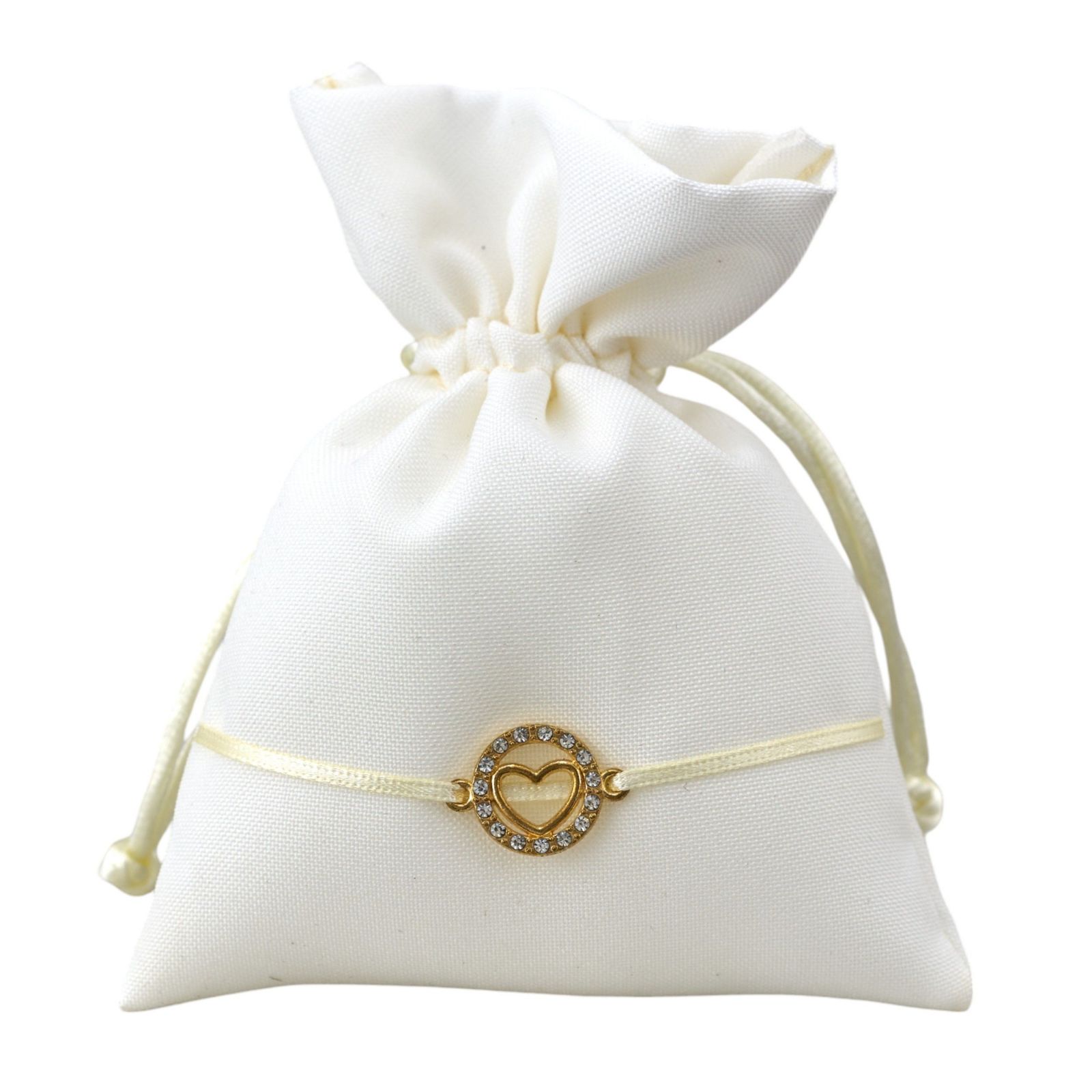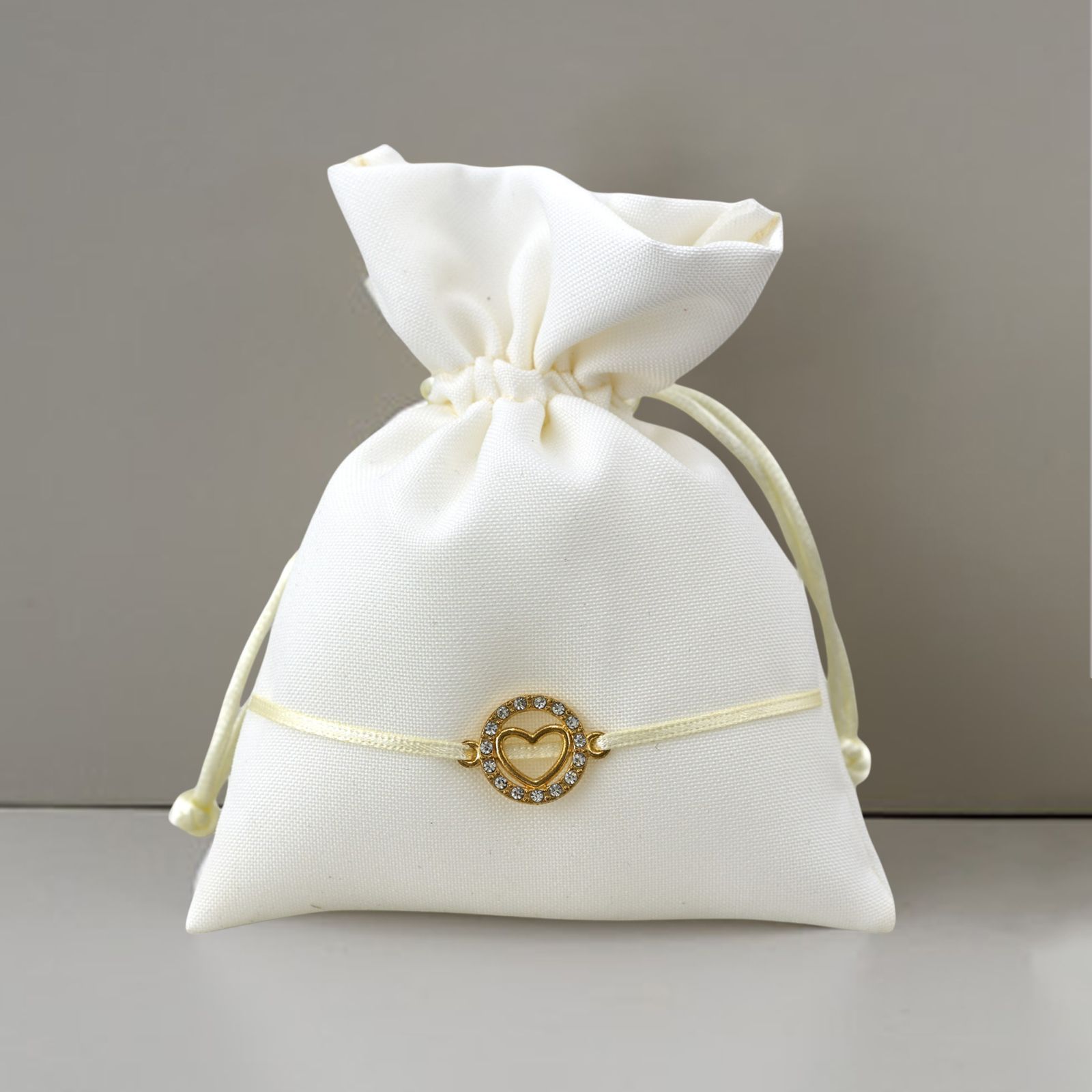 Il sacchetto portaconfetti con ciondolo tondo con cuoricino è il regalo perfetto per ogni occasione speciale. Realizzato in cotone di alta qualità e decorato con un ciondolo tondo con cuore centrale impreziosito con strass, questo portaconfetti è elegante e raffinato, ideale per matrimonio, anniversario e altri eventi importanti.