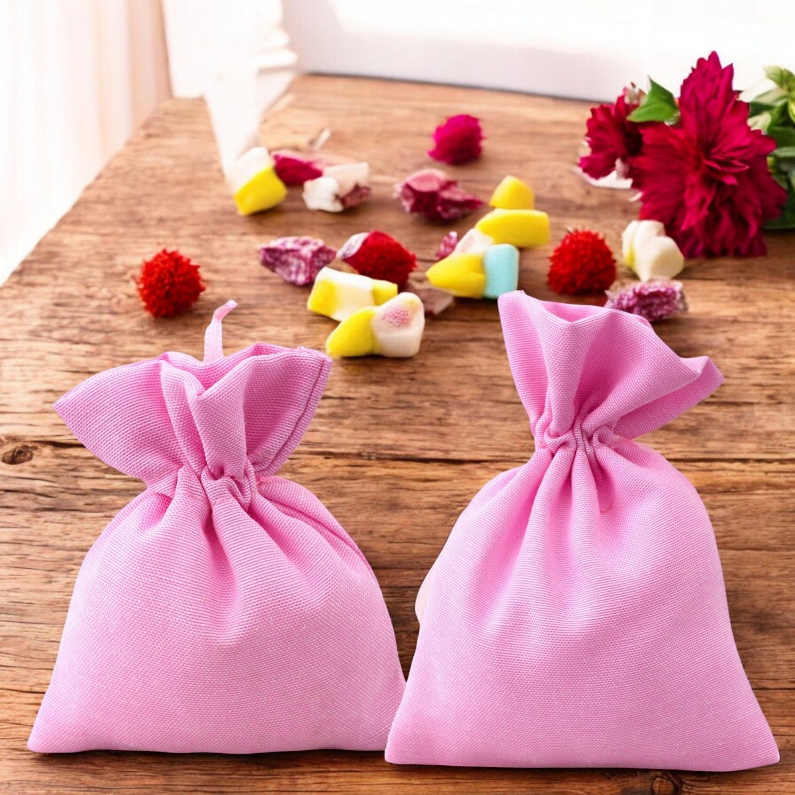Il sacchetto per confetti rosa è l'idea perfetta per confezionare i tuoi confetti in modo elegante e originale. Realizzato in morbido cotone, questo sacchetto è disponibile in due dimensioni: Standard (8 x 10 cm circa) e Grande (10 x 13 cm circa). Il colore rosa lo rende perfetto per eventi come la nascita, il compleanno e la comunione.