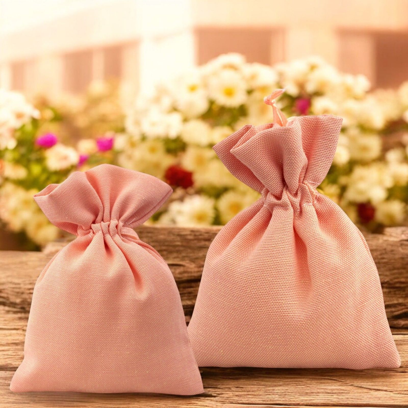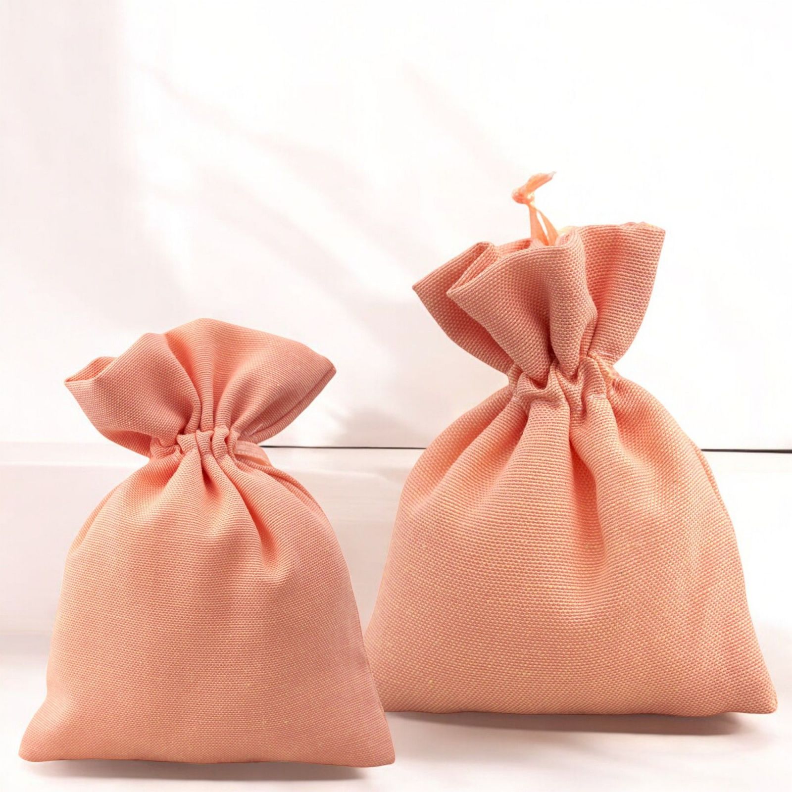 Per il tuo matrimonio, anniversario, comunione o cresima, regala ai tuoi ospiti un piccolo pensiero speciale con questi sacchetti portaconfetti rosa pesco. Realizzati in morbido cotone, sono disponibili in due dimensioni: Standard (8 x 10 cm circa) e Grande (10 x 13 cm circa).