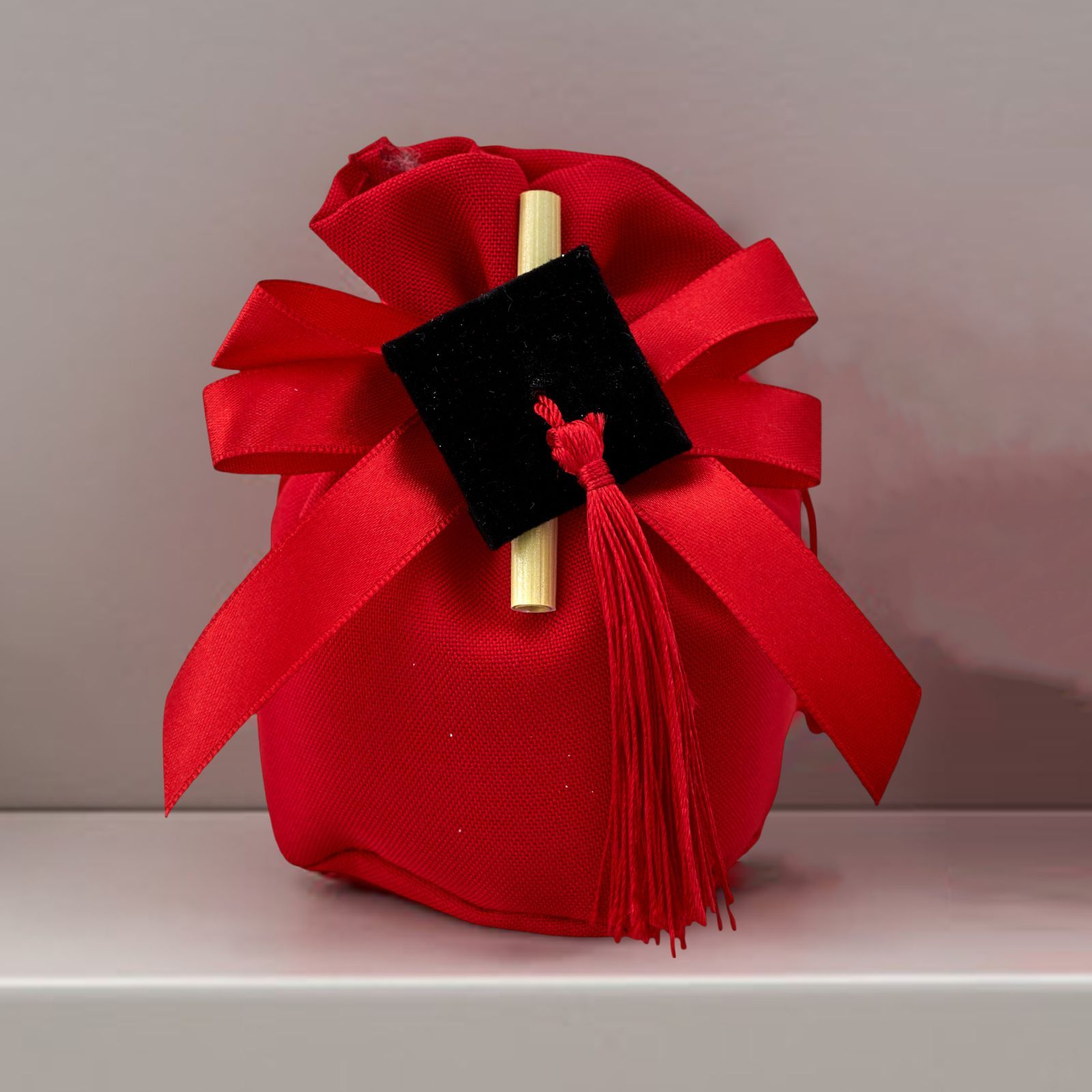 Non perdere l'occasione di stupire i tuoi ospiti con una bomboniera unica e originale, pensata appositamente per celebrare la tua laurea in modo indimenticabile. Scegli il sacchetto a palla rosso tiranti e lascia un segno indelebile nella memoria di chi parteciperà alla tua festa!