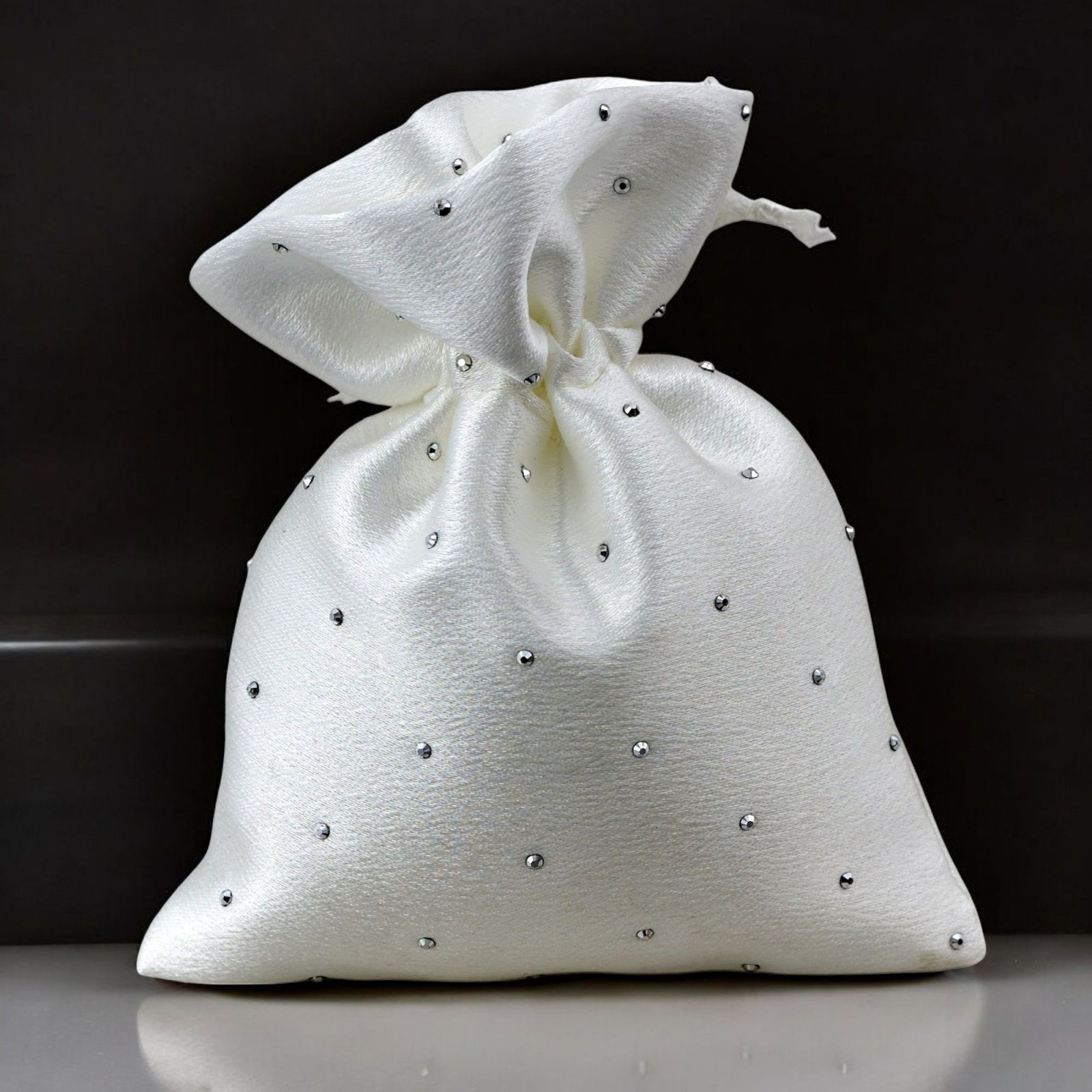 Scopri i nostri eleganti sacchetti portaconfetti in raso panna, decorati con delicati strass e dotati di pratici tiranti. Perfetti per arricchire la tua confettata e aggiungere un tocco di classe a eventi come comunione, cresima, matrimonio o anniversario. Un dettaglio raffinato che lascerà un'impressione duratura sui tuoi ospiti.