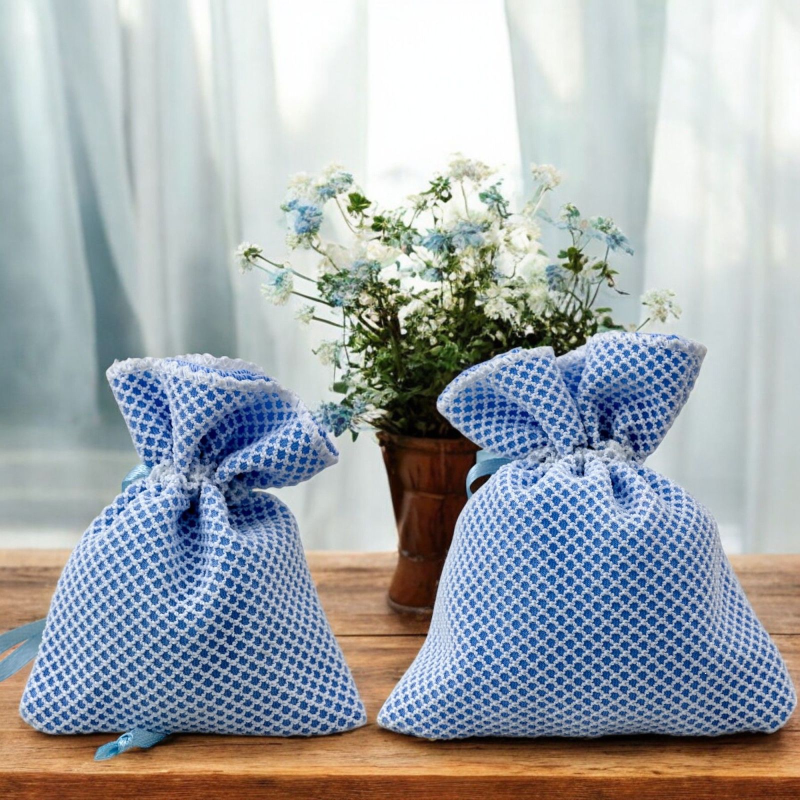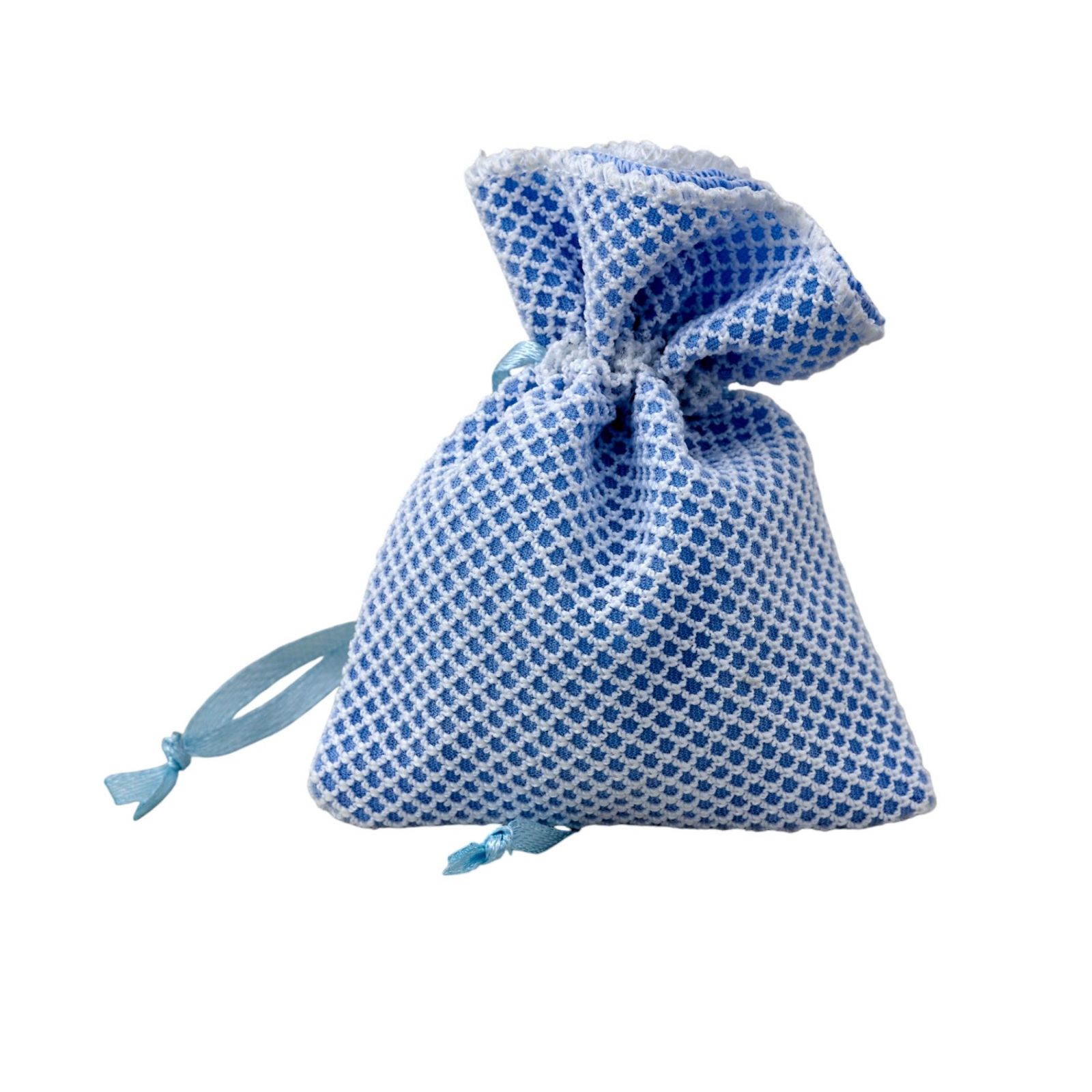 Il Sacchetto per confetti rete è l'accessorio perfetto per rendere indimenticabile il tuo evento speciale. Realizzato in cotone di alta qualità, questo sacchetto portaconfetti è disponibile in due dimensioni: Standard (8 x 10 cm circa) e Grande (10 x 12 cm circa). Il colore celeste conferisce un tocco di eleganza e dolcezza alla tua bomboniera.