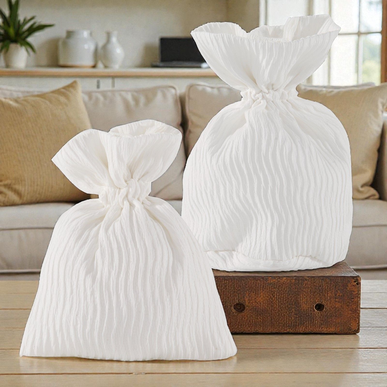 Realizzati in un delicato tessuto bianco, questi sacchettini emettono una luce pura e luminosa, perfetta per rappresentare la gioia e la felicità dei momenti da festeggiare. Non si tratta solo di un regalo, ma di un gesto che racchiude emozioni, ricordi e promesse. Ogni sacchettino è un invito a condividere un momento di gioia con le persone che ami.