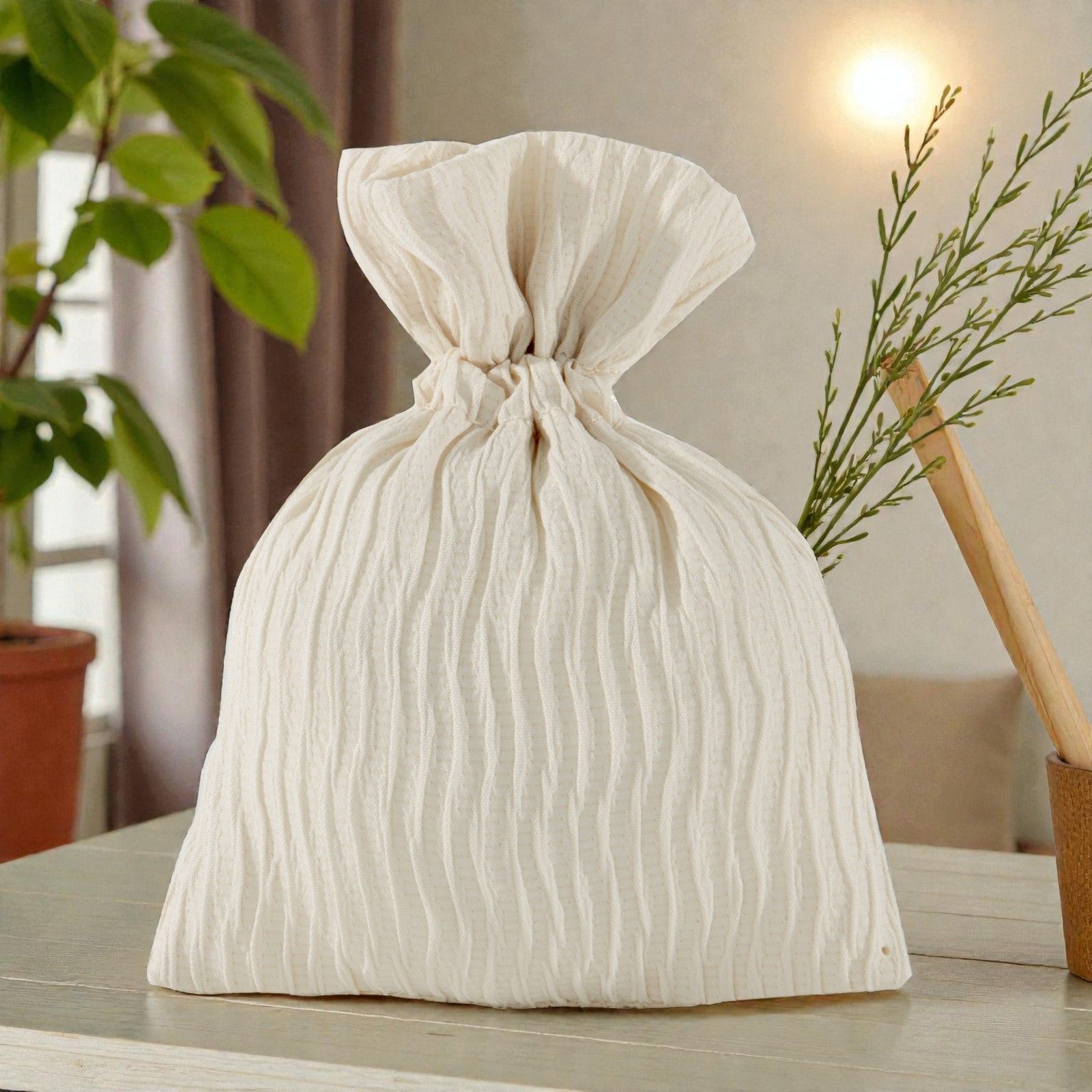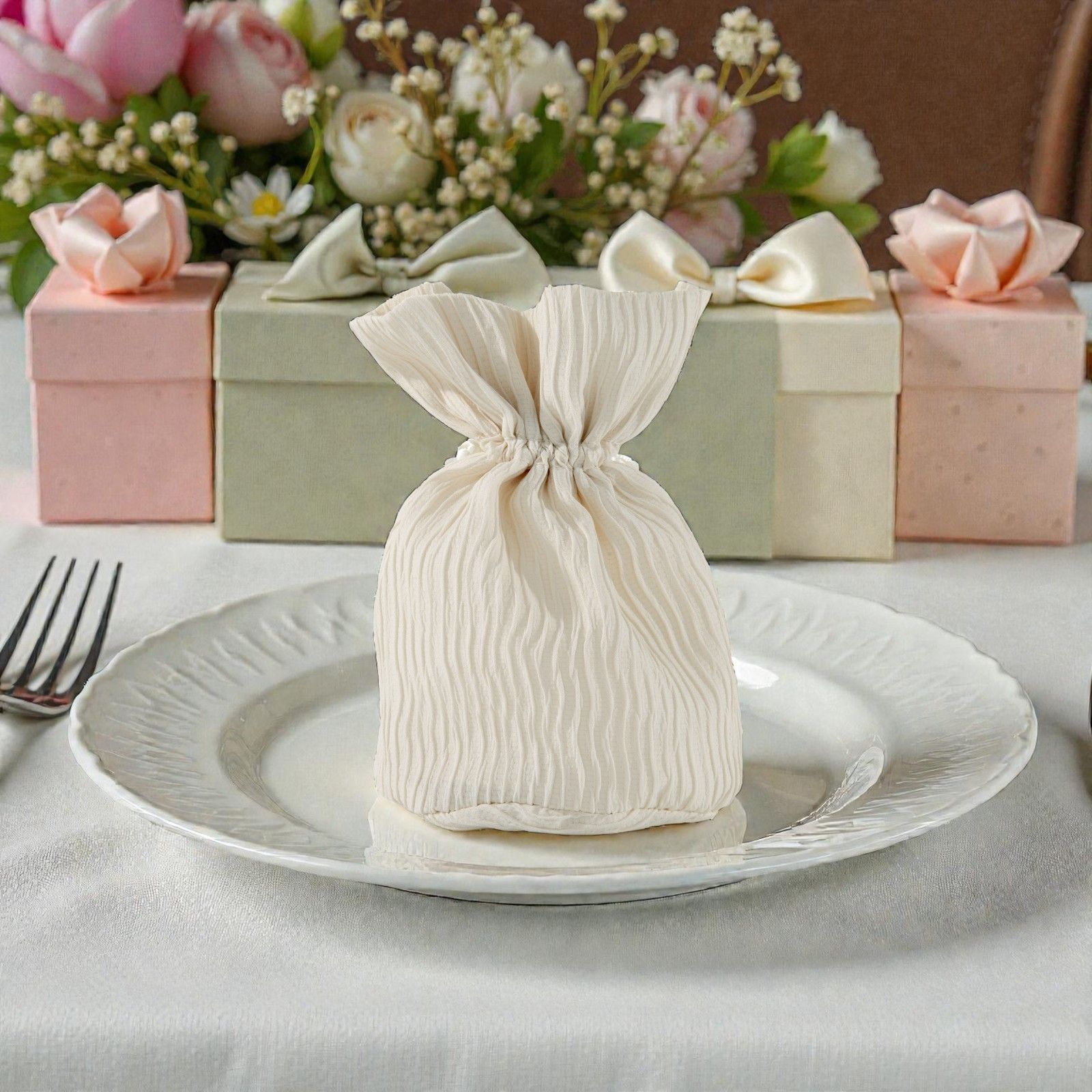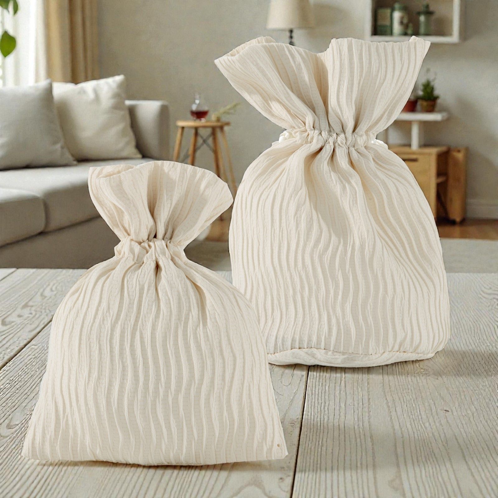 Il colore crema dei sacchettini si abbina perfettamente a qualsiasi tema di festa, dalla nascita al matrimonio, rendendo ogni occasione ancor più speciale. La qualità del tessuto ad onde dona un aspetto unico e sofisticato, trasformando anche il più semplice dei regali in un gesto di amore e cura. Ogni dettaglio è pensato per esprimere il tuo affetto e gratitudine nei confronti dei tuoi ospiti.