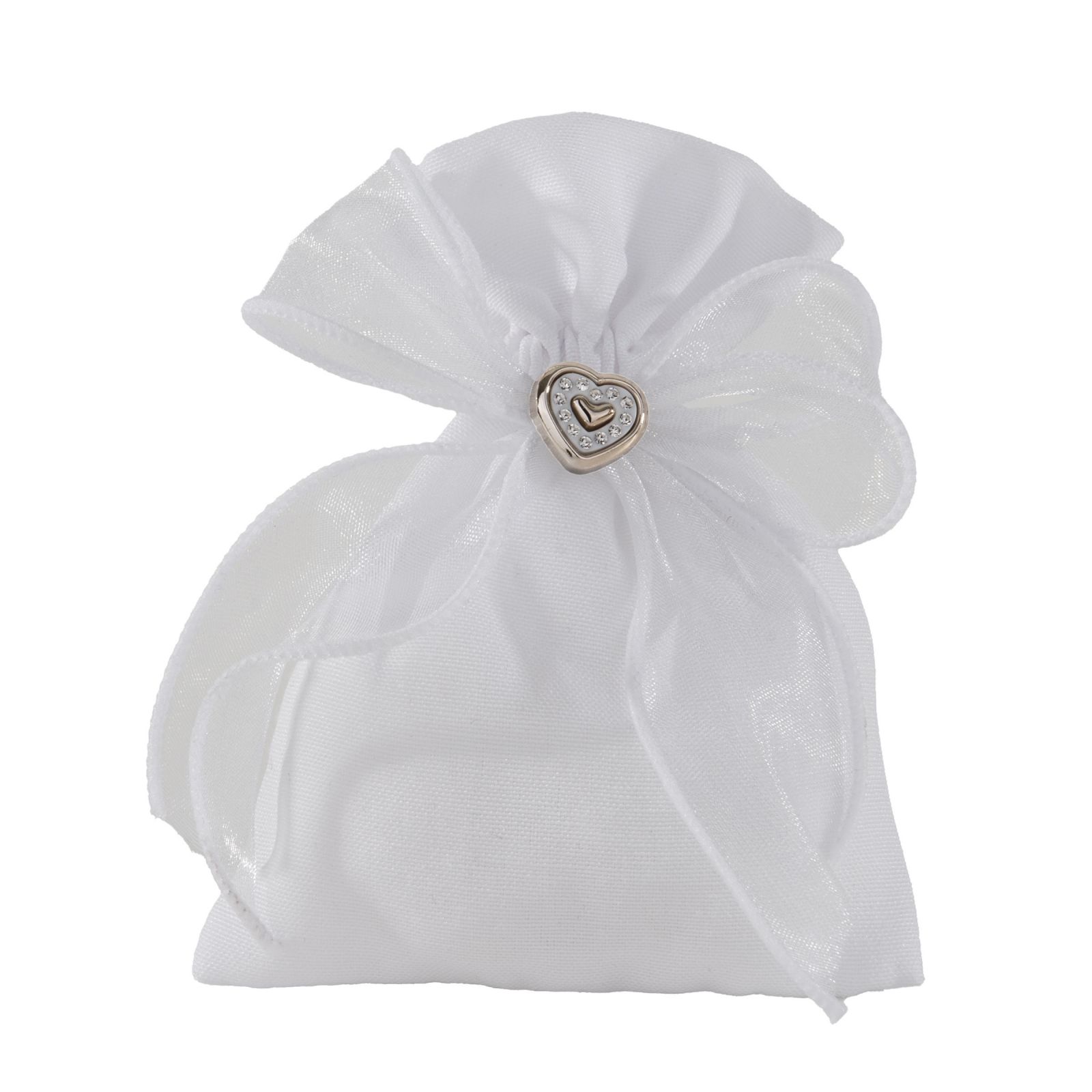 Ogni momento speciale merita di essere celebrato con un tocco di eleganza e raffinatezza. Il nostro elegante sacchettino per confetti è perfetto per rendere indimenticabili le vostre cerimonie, come matrimoni e anniversari. Con un fiocchetto in organza e un cuoricino centrale dorato arricchito da strass, questo sacchettino trasmette amore e cura, proprio come l'evento che state festeggiando.