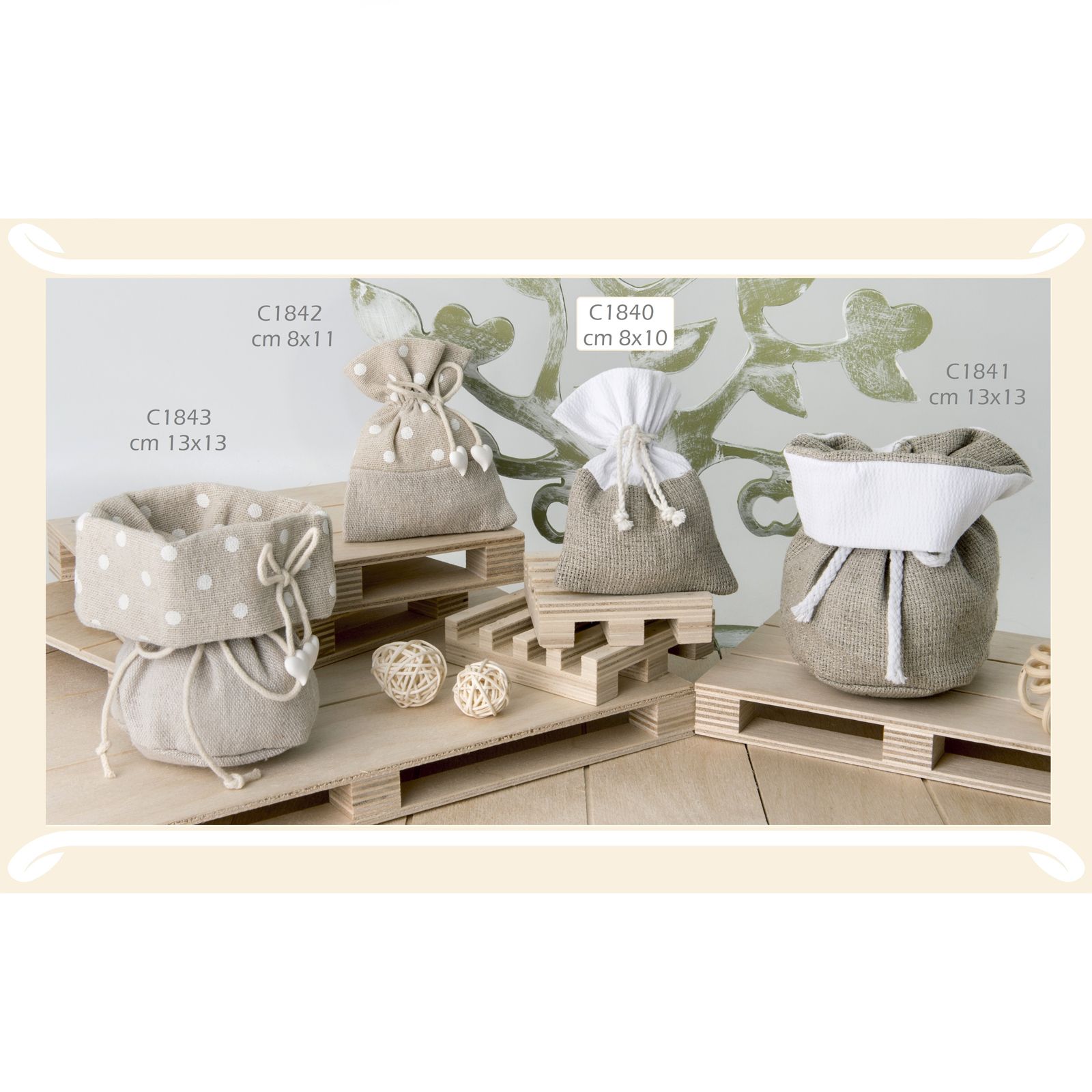 Questi sacchettini tondi sono ideali da decorare con applicazioni e accessori, ma possono essere offerti anche così, nella loro semplicità.