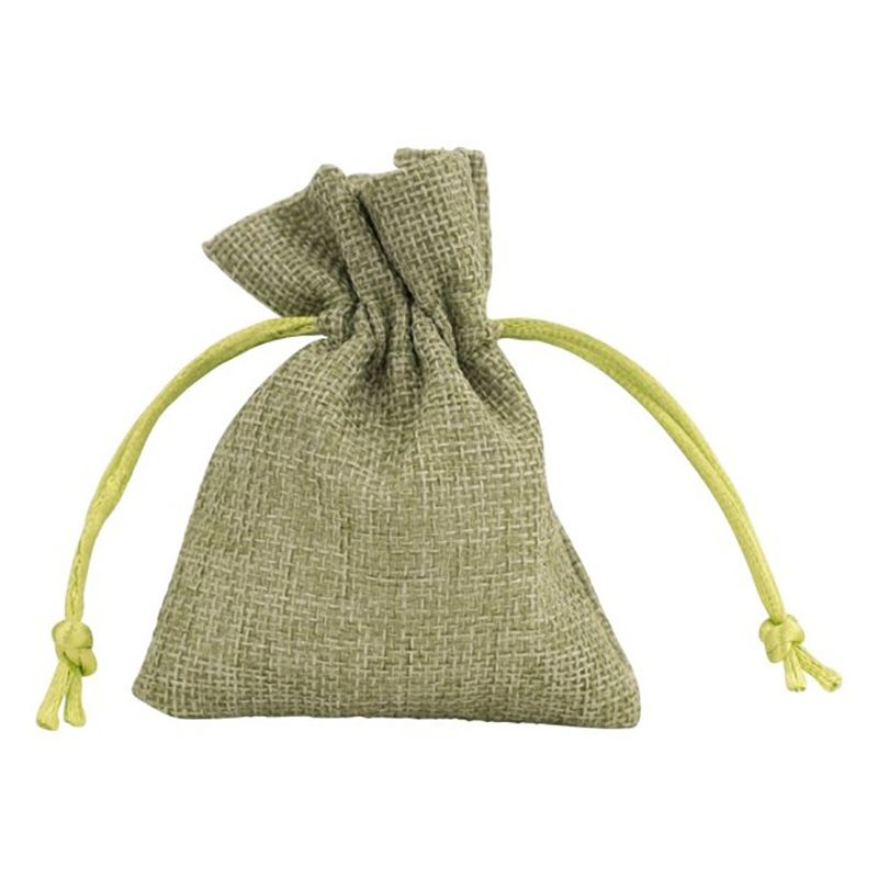 Sacchetto in juta color verde chiaro, con pratici cordoncini tiranti di chiusura in tinta. Perfetto da personalizzare con l'aggiunta di decorazioni, nastri, magneti, ecc. per creare le tue confettate economiche!