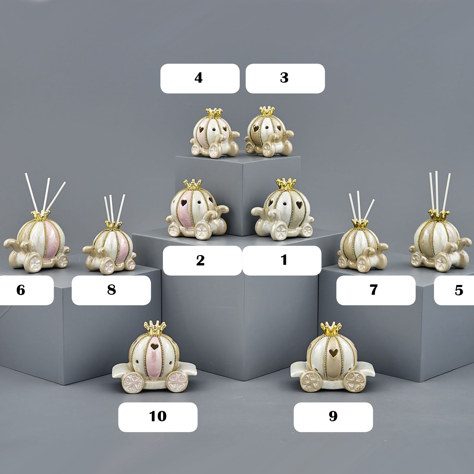 Scegli queste elegantissime carrozze di Cenerentola in modalità luce led o profumatore per ambienti, in due colori: rosa e tortora e in diverse dimensioni selezionabili.