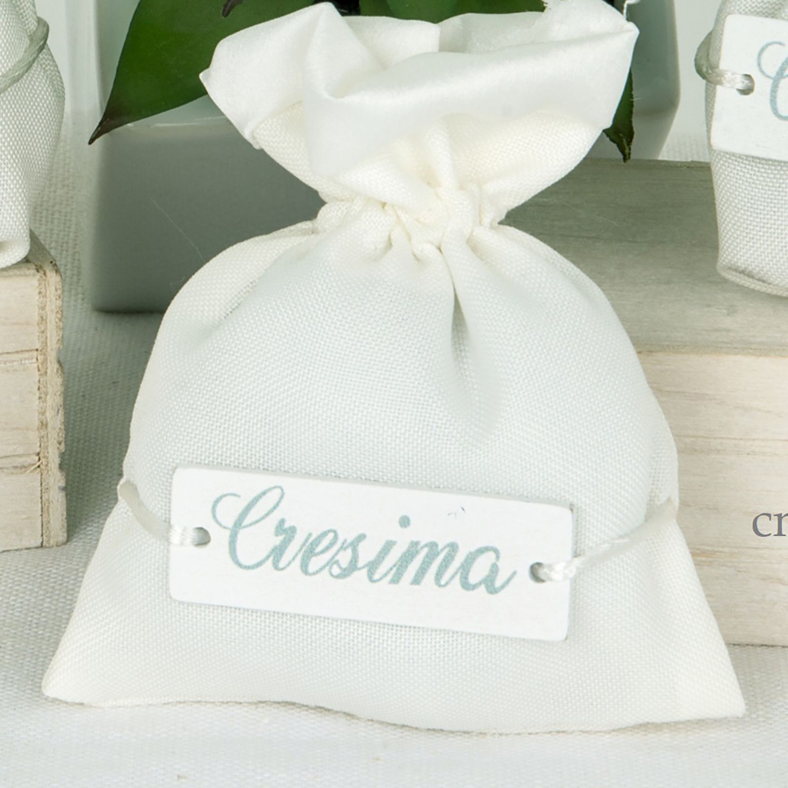 Accogli i tuoi ospiti con calore e gioia durante la cerimonia di Cresima con il sacchettino porta confetti in cotone bianco . Questo delizioso sacchettino, realizzato con materiali di alta qualità, è un dettaglio affascinante e raffinato che aggiungerà un tocco speciale alla tua festa. Il nastrino in raso bianco dona un tocco di eleganza al design, mentre la targhetta in legno sulla parte inferiore reca la scritta "Cresima" e un grazioso cordoncino decorativo che lo completa splendidamente.