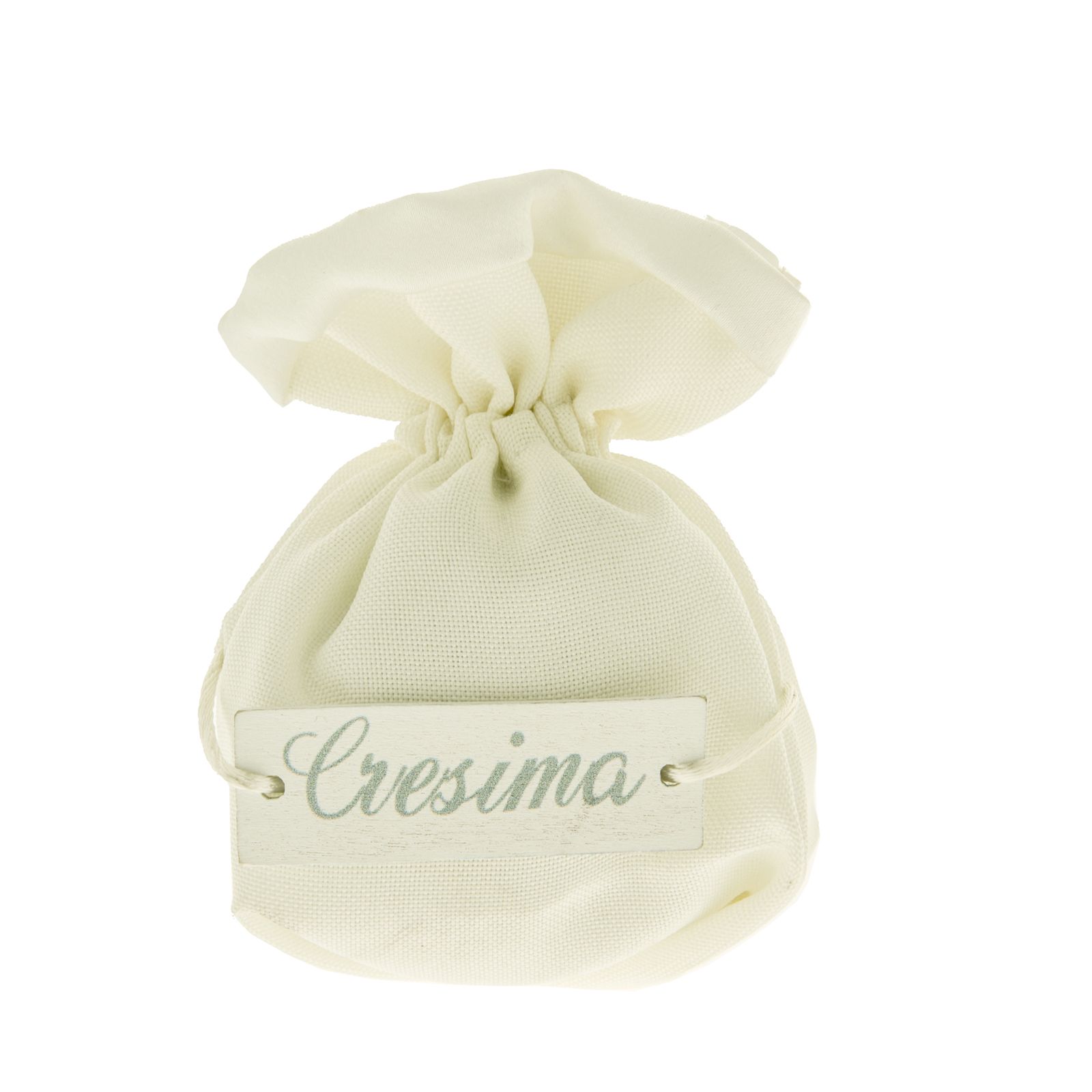 Accogli i tuoi ospiti con calore e gioia durante la cerimonia di Cresima con il sacchettino porta confetti in cotone bianco dalla forma rotonda. Questo delizioso sacchettino economico, realizzato con materiali di alta qualità, è un dettaglio affascinante e raffinato che aggiungerà un tocco speciale alla tua festa. Il raso bianco dona un tocco di eleganza al design, mentre la targhetta in legno sulla parte inferiore reca la scritta "Cresima" e un grazioso cordoncino decorativo che lo completa splendidamente.