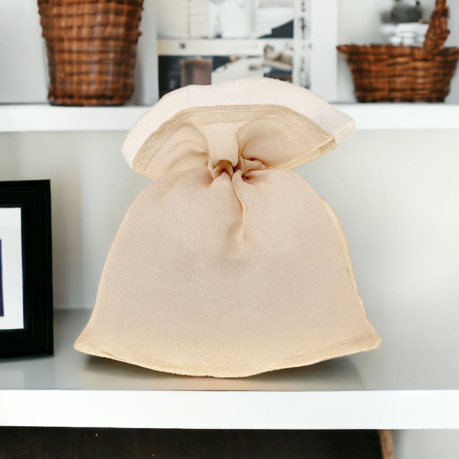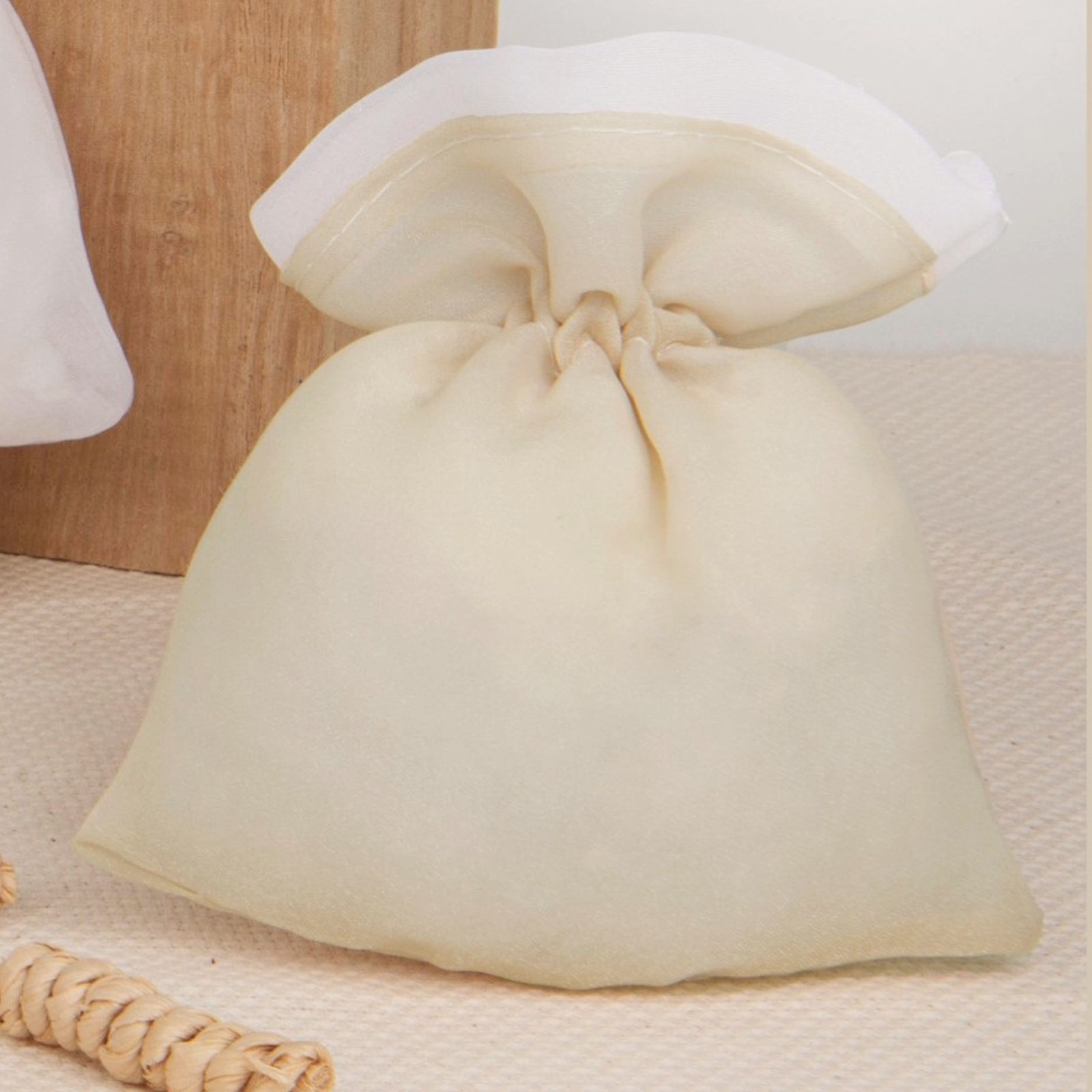 Regala un tocco di stile alla tua confettata grazie al nostro sacchetto portaconfetti bicolore. Realizzato in cotone, con parte inferiore color crema e parte superiore color panna, questo sacchetto originale misura circa 10x12 cm e rappresenta un'ottima soluzione per la tua confettata. Ideale per matrimonio, prima comunione, santa cresima o anniversario, questo portaconfetti elegante farà sicuramente la differenza durante la tua confettata. Una scelta originale che renderà il tuo evento ancora più speciale.