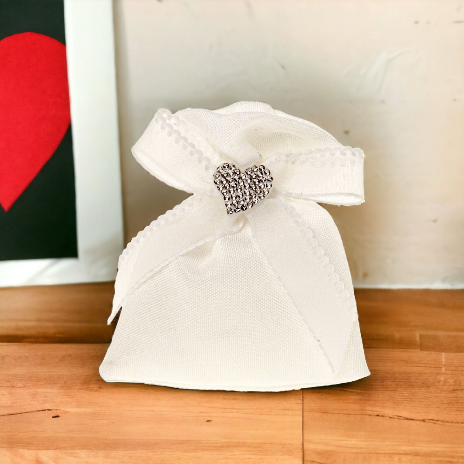 Regala un'esperienza unica e straordinaria con sacchetto con fiocco in organza e applicazione cuore con strass . Questo portaconfetti in cotone bianco è la scelta perfetta per rendere speciale ogni evento: dalla prima comunione alla santa cresima, dal matrimonio all'anniversario. Una confettata elegante che sarà ricordata da tutti gli invitati! Infatti, la bomboniera è un dono che celebra l'occasione speciale, come matrimonio, anniversario, prima comunione o santa cresima. Confezionata con cura e misurante 9x11 circa, questa bomboniera offrirà un'esperienza di lusso ai tuoi ospiti.