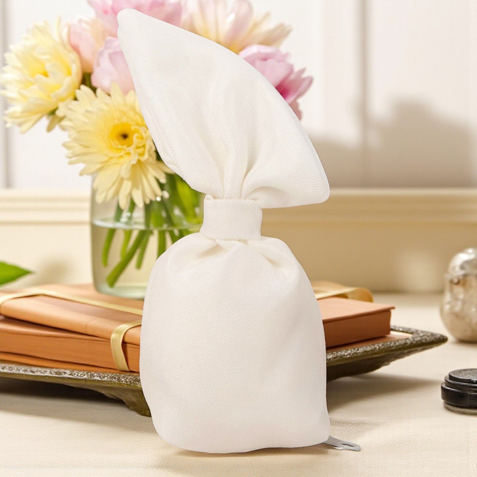 Regala un ricordo indelebile ai tuoi ospiti con questo elegante sacchetto per confetti crema con una parte superiore con due punte unite da un nodo, munito di comoda cerniera sul fondo da dove inerire confetti, caramelle o piccoli oggetti. Adatto per prima comunione, santa cresima, matrimonio, anniversario e per qualsiasi altro evento, è la soluzione ideale per una confettata o un segnaposto, una bomboniera per fine festa, una decorazione tavolo o un elemento per sweet table. Al tempo stesso, il sacchetto è un contenitore perfetto per piccoli oggetti, rendendolo un'ottima scelta per confezionare le bomboniere. Il regalo di questo sacchettino porta confetti sicuramente offrirà ai tuoi invitati un ricordo indelebile e sarà un modo unico e originale per far sentire loro il tuo apprezzamento. Acquista subito il tuo sacchettino porta confetti e regala un ricordo che rimarrà per sempre nei cuori!