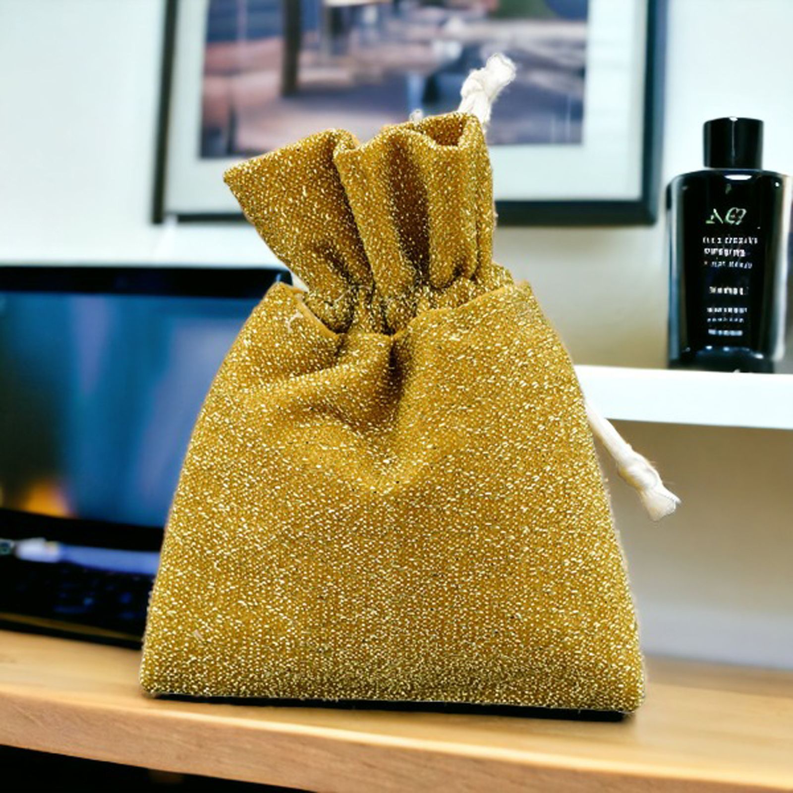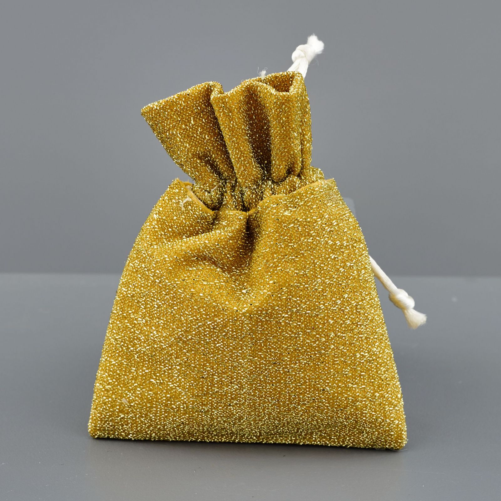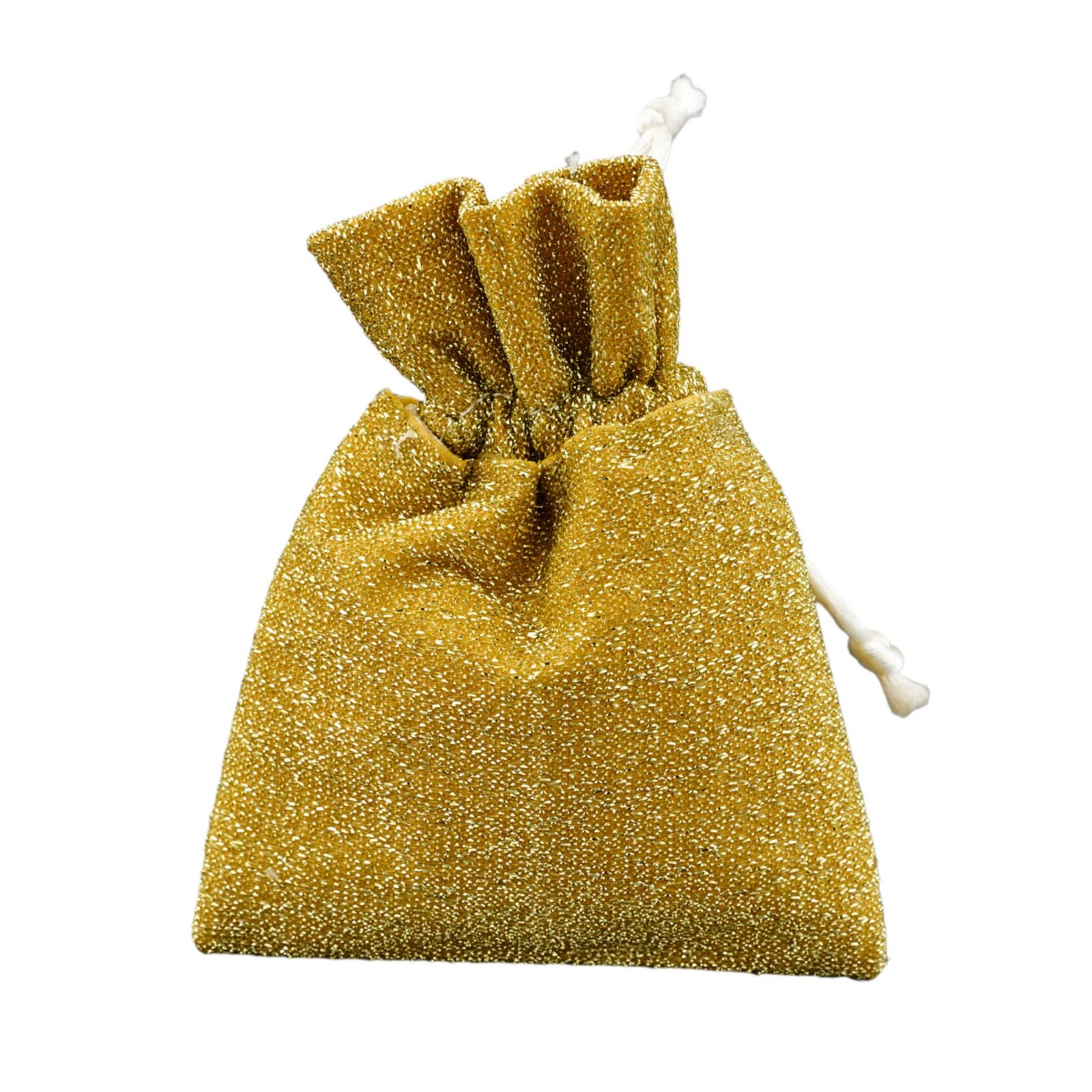 Un Sacchetto portaconfetti con tiranti è la soluzione ideale per rendere un'occasione speciale ancora più memorabile. Questo prodotto, dalle dimensioni di 8x10 cm circa, è realizzato in cotone laminato oro e può essere utilizzato come segnaposto durante una confettata di nozze oro, matrimoni, e altri eventi.