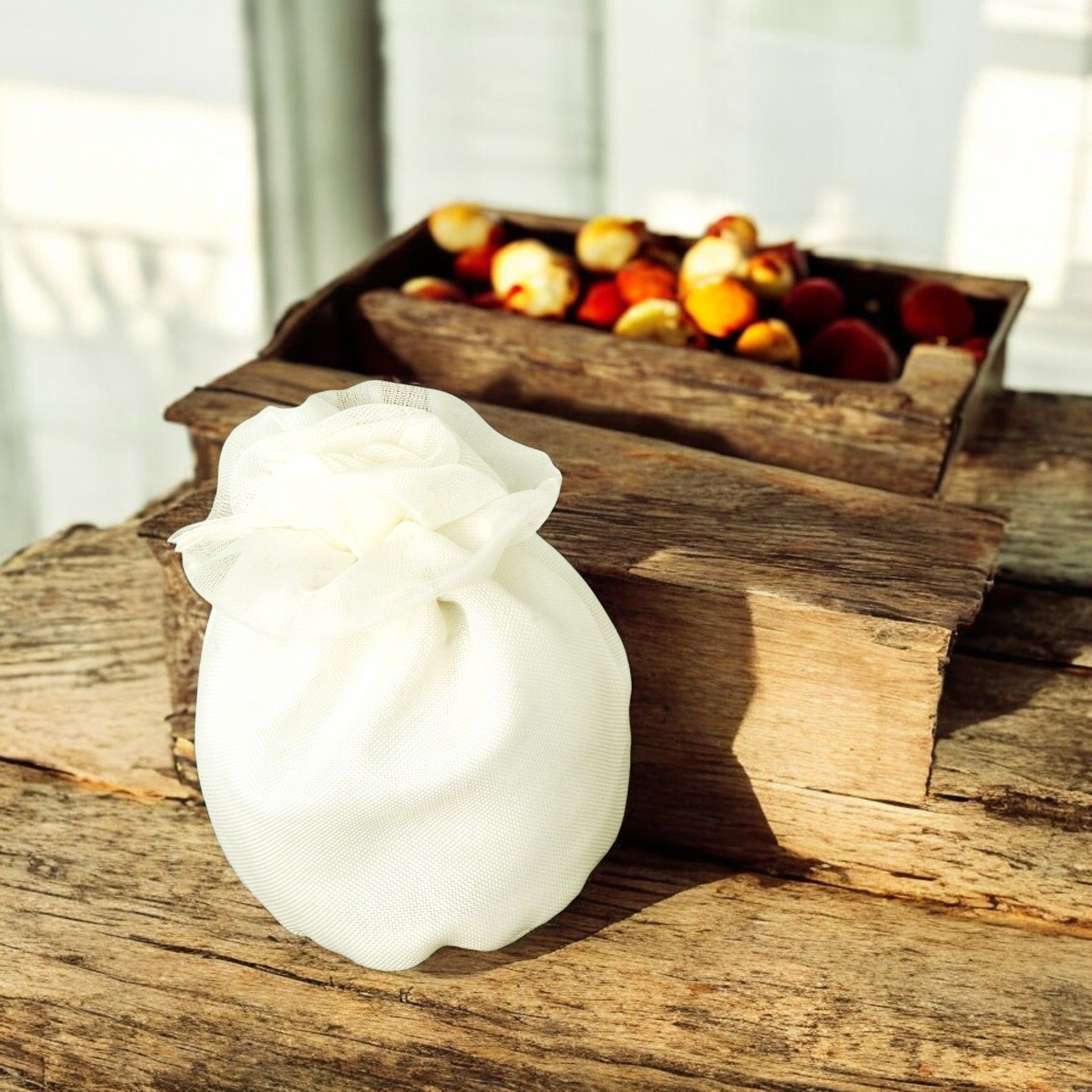 Il sacchettino portaconfetti a palla con elegante rosa e comodi tiranti è l'ideale per rendere speciale il tuo matrimonio, anniversario o promessa d'amore. Realizzato in cotone di alta qualità, questo portaconfetti crea un'atmosfera romantica e raffinata.
