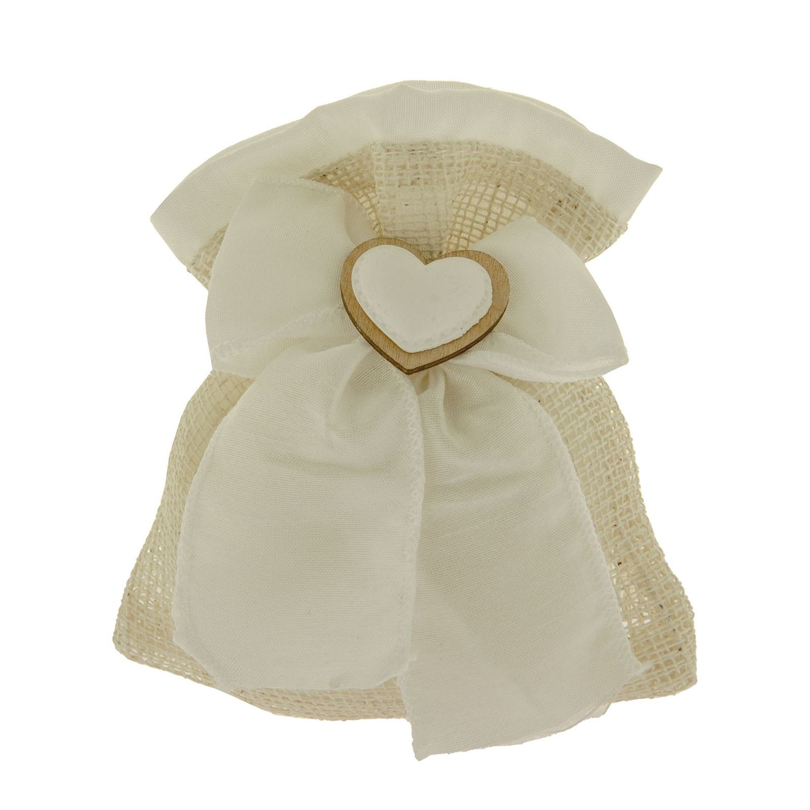 Realizzato in materiale di alta qualità, il sacchettino ha dimensioni di circa 10x12 cm ed è disponibile nel colore bianco. L'organza bianca e l'applicazione a cuore al centro conferiscono un tocco elegante e romantico a questo gadget che sicuramente verrà apprezzato dai tuoi invitati.
