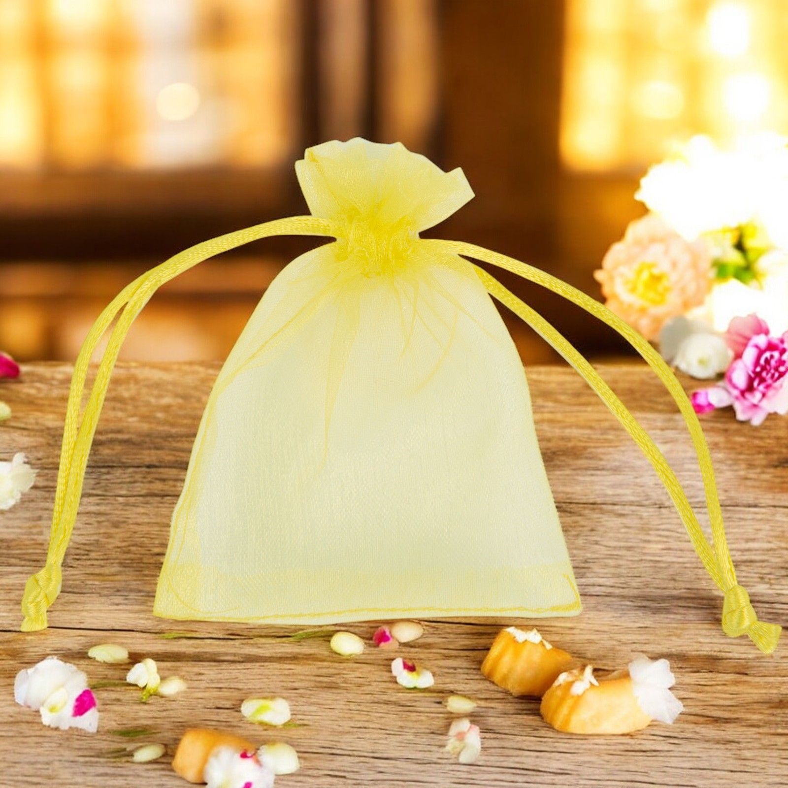 Il sacchettino portaconfetti semplice con tiranti è il regalo perfetto da offrire agli invitati alla comunione o alla cresima. Realizzato in organza gialla, ha dimensioni di circa 8x10 cm, ideale per contenere confetti o gadget da regalare ai partecipanti alla cerimonia.