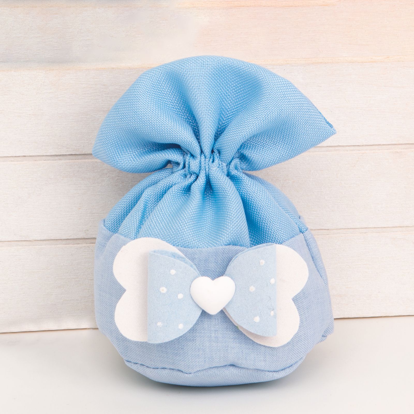 Il colore celeste e bianco conferisce un tocco di dolcezza e eleganza, perfetto per eventi come la nascita o il battesimo di un bimbo. I tiranti comodi e resistenti assicurano una chiusura sicura e permettono di conservare i confetti in modo sicuro.