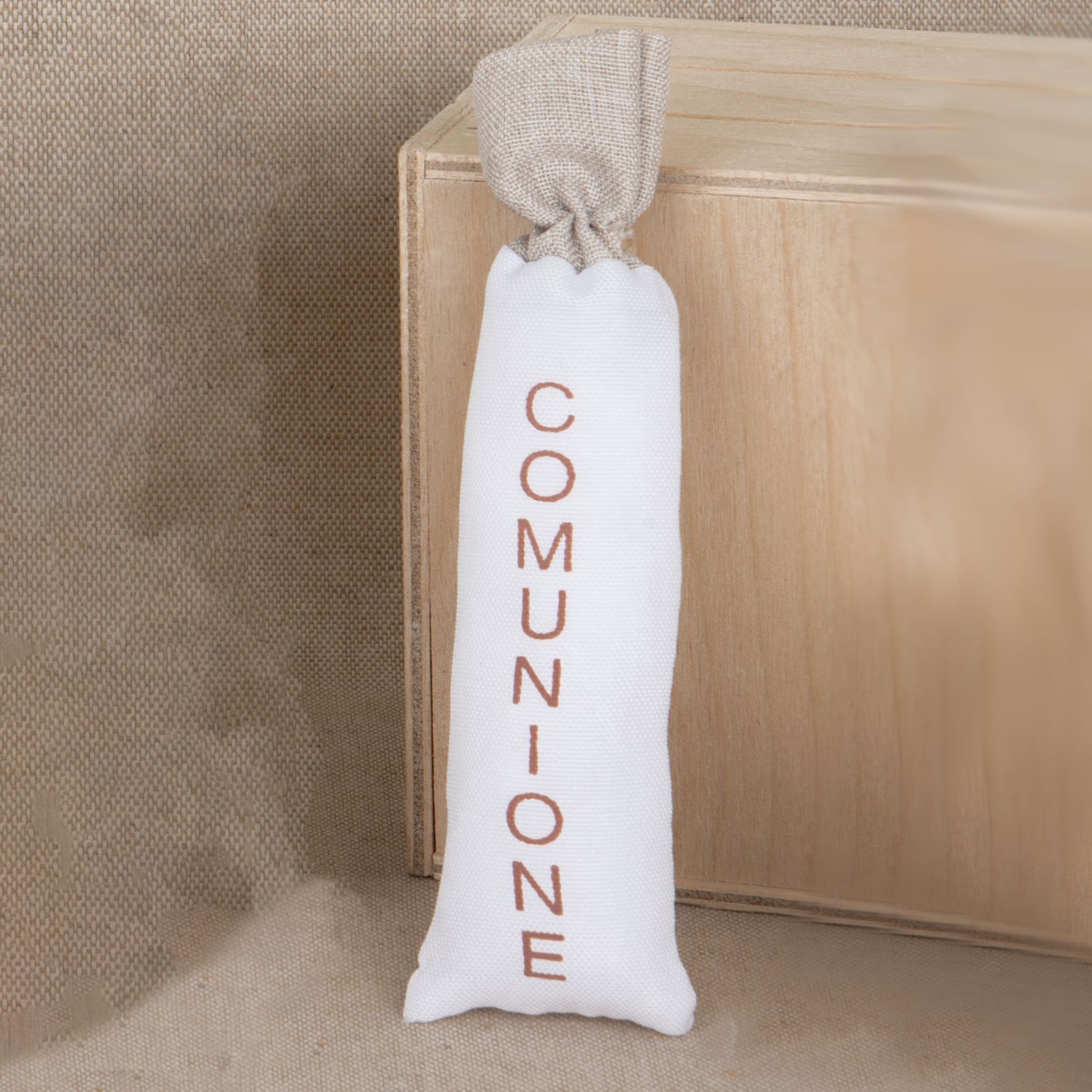 Il design a forma di tubo con la scritta Comunione lo rende un'idea originale e delicata per regalare ai tuoi ospiti un dolce ricordo di questa giornata. Realizzato nei colori bianco e tortora, con comodi tiranti .