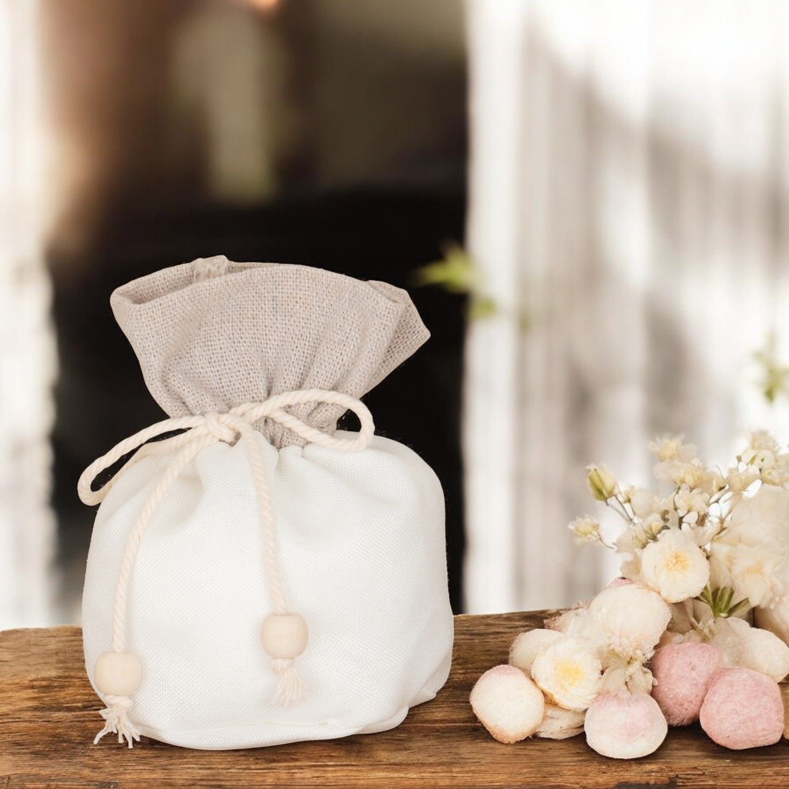 Il sacchettino portaconfetti a palla con comodi tiranti e pendenti rappresenta una scelta originale e raffinata per le tue bomboniere. Realizzato in morbida juta di alta qualità, è disponibile nei delicati colori panna e juta. Perfetto per celebrare eventi come comunioni, cresime, matrimoni o anniversari, le sue dimensioni di circa 10 cm lo rendono ideale per contenere confetti da regalare agli ospiti come segno di gratitudine.