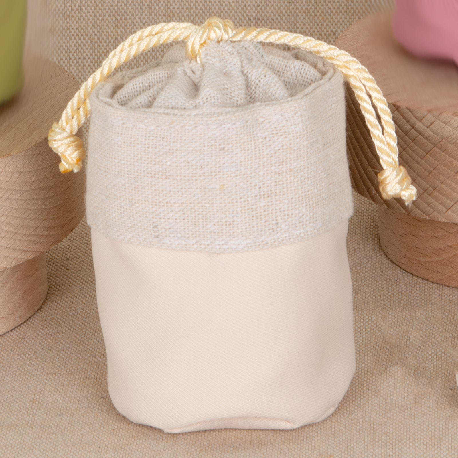 Con dimensioni di 8 cm e un elegante colore beige, si adatta a ogni tipo di allestimento. I tiranti consentono una chiusura semplice e veloce, garantendo praticità e stile.
