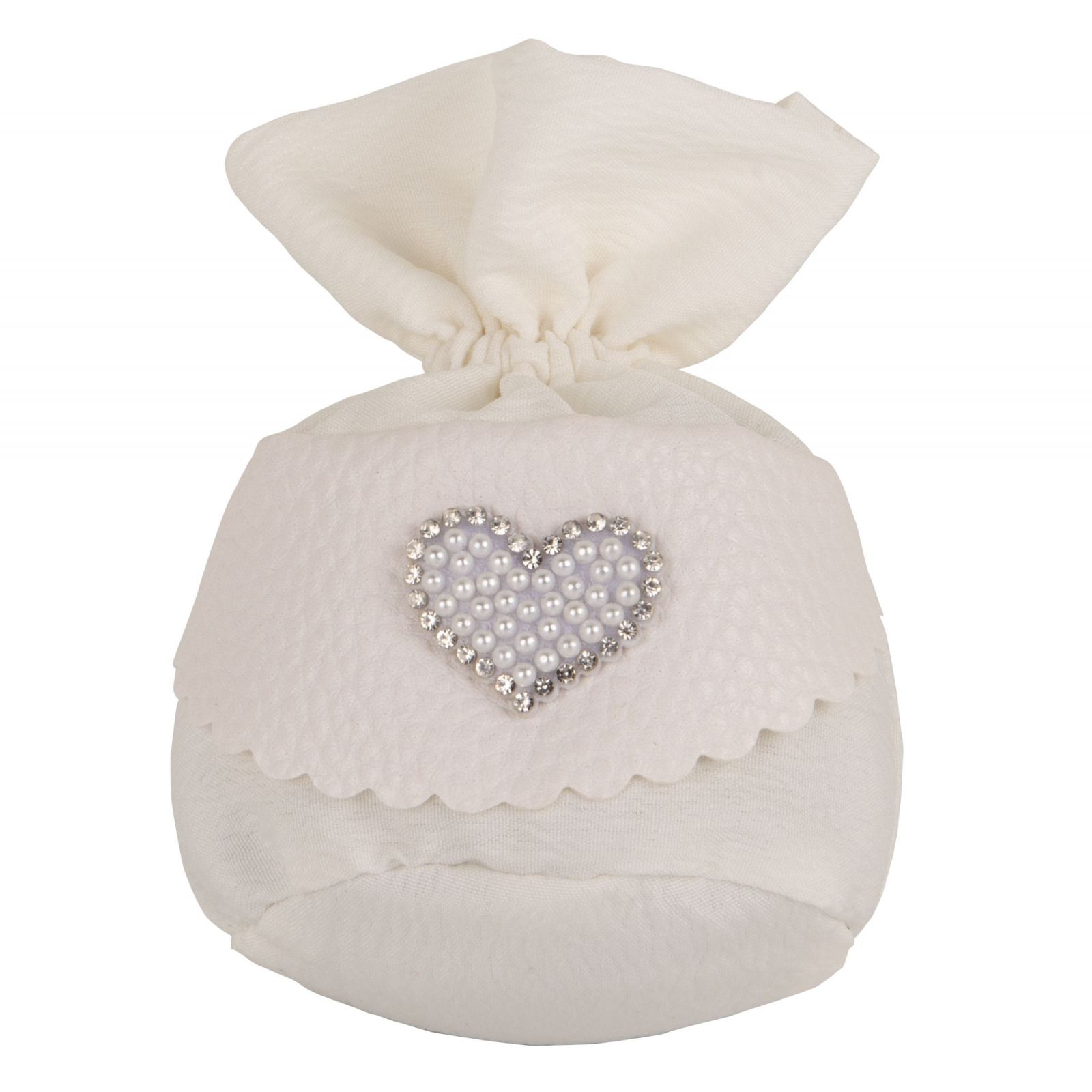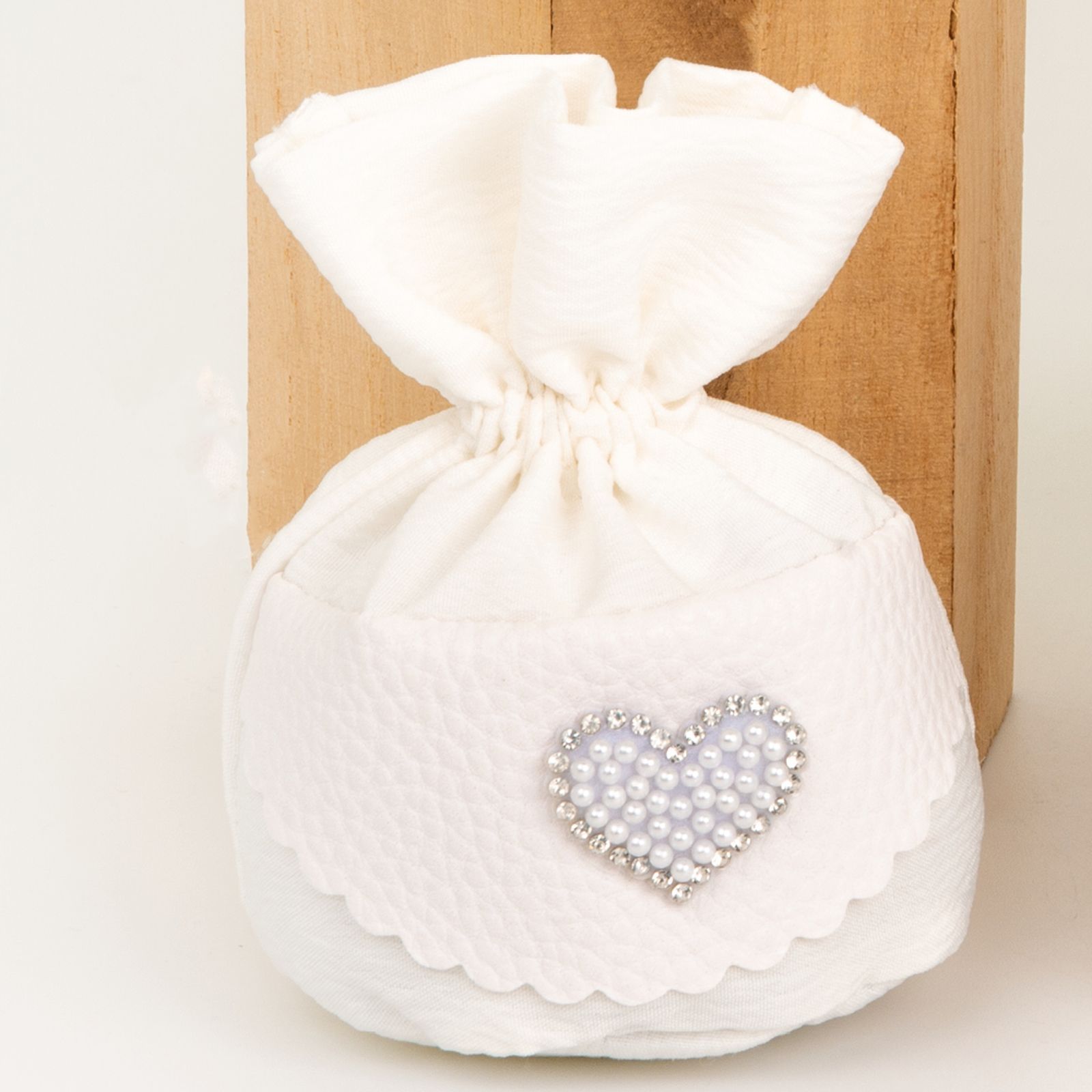 I sacchetti per bomboniere sono disponibili in un elegante colore bianco, perfetto per qualsiasi tipo di evento e facilmente abbinabile a qualsiasi tema o alle altre bomboniere presenti alla tua festa. Il dettaglio in ecopelle e cuoricino con perline aggiunge un tocco di classe e originalità, rendendo questa bomboniera unica e indimenticabile per i tuoi ospiti.