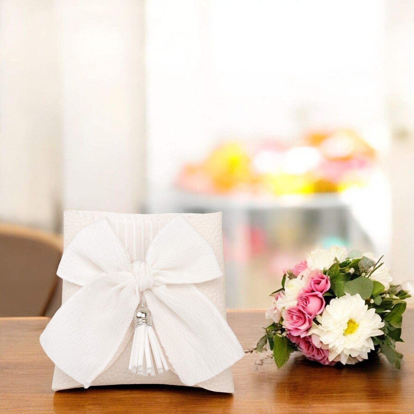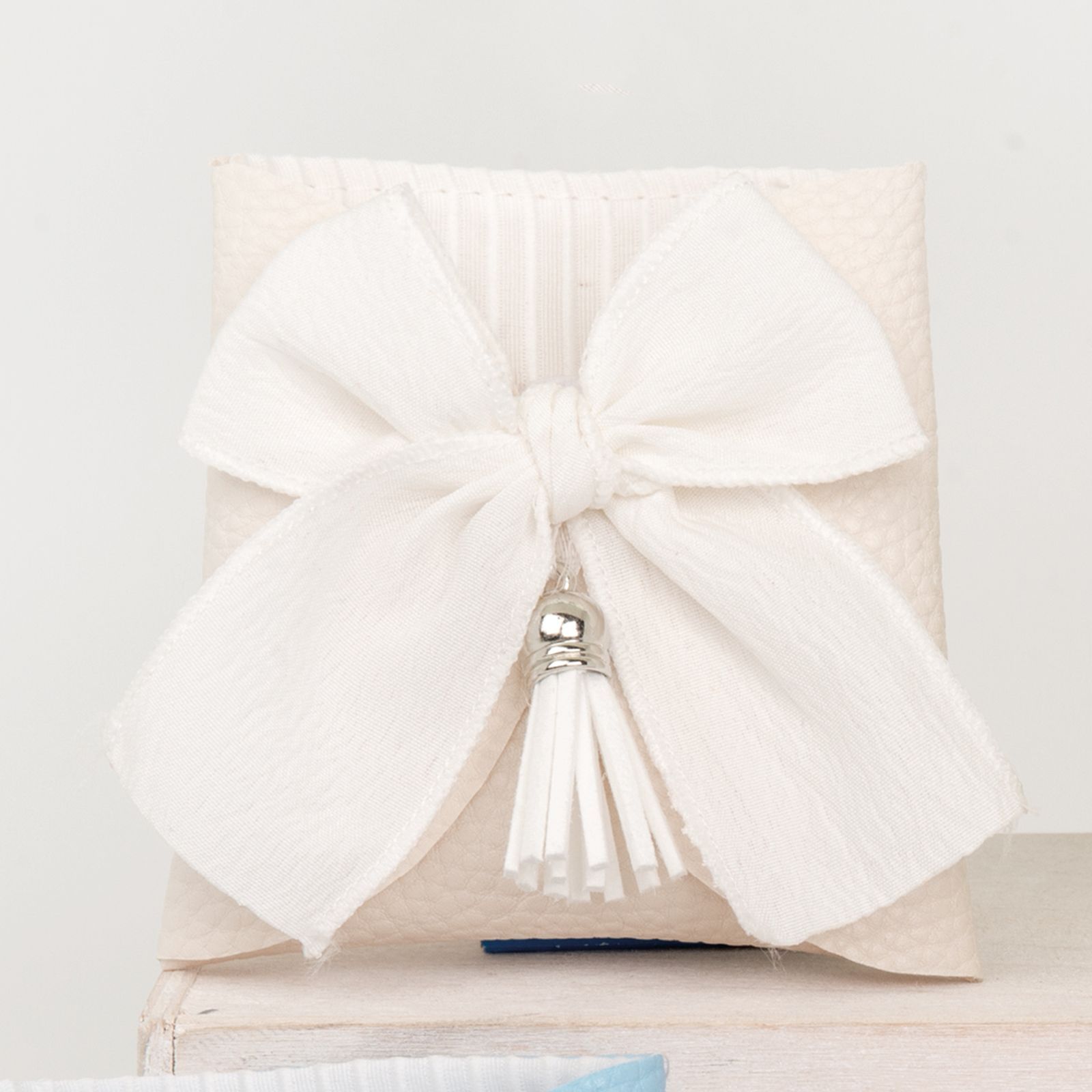 Il sacchettino bustina con fiocco centrale e nappina è un'elegante e raffinata bomboniera da regalare agli invitati durante eventi speciali come matrimoni, anniversari, cresime e comunioni. Realizzato in cotone di alta qualità, questo sacchettino è perfetto per contenere confetti o piccoli regali da offrire ai vostri ospiti.