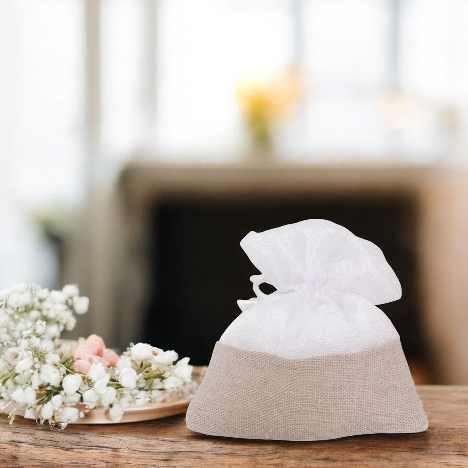 Realizzati in morbido cotone, i sacchetti portaconfetti sono disponibili in un elegante mix di colori bianco e beige, che si adattano perfettamente a qualsiasi tipo di decorazione e stile. Le loro dimensioni, di circa cm 10 x 12, li rendono perfetti per contenere i confetti o altri piccoli gadget da regalare ai tuoi invitati.