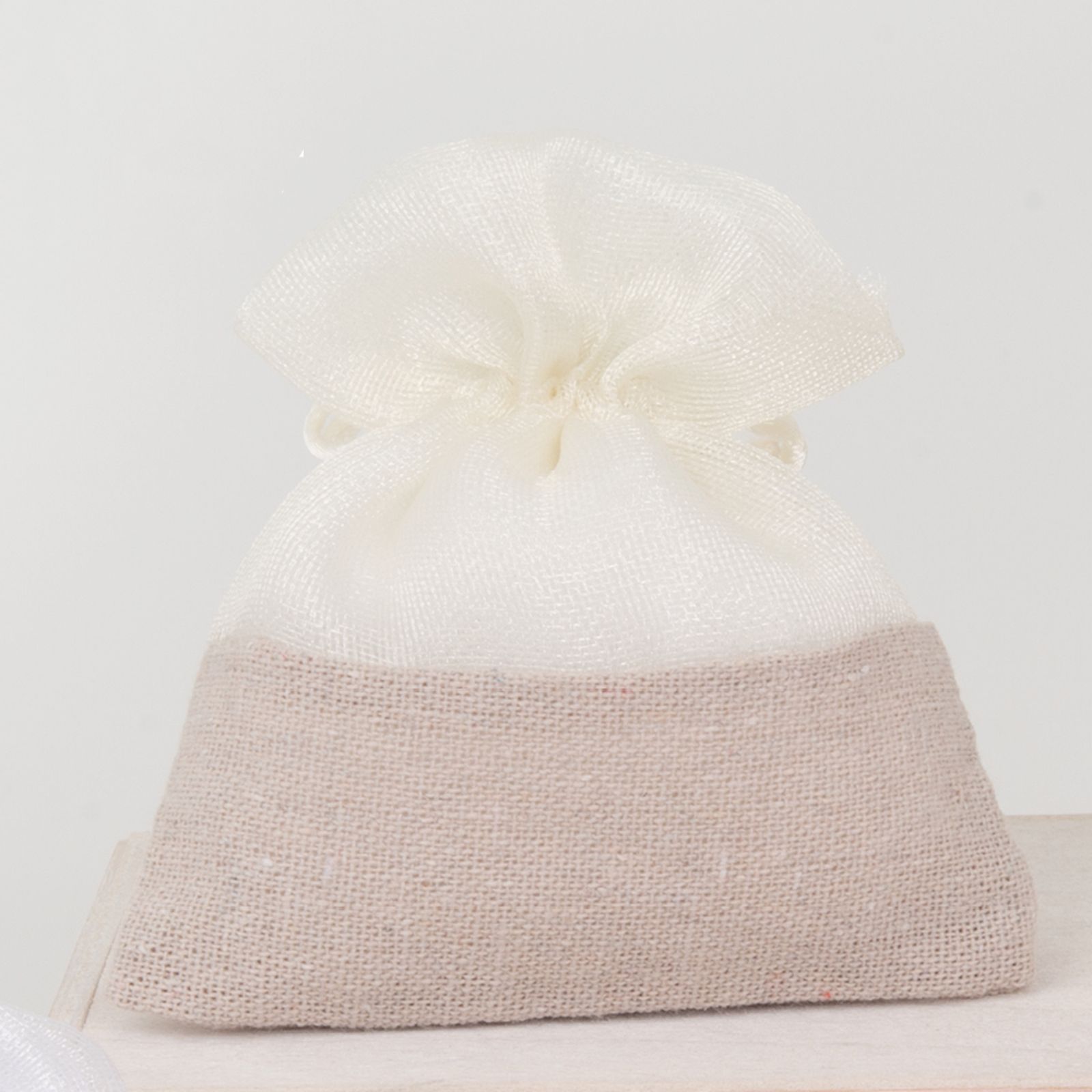 Utilizzabile anche come segnaposto o per confezionare regali speciali, questo sacchetto è perfetto per creare una confettata o per confezionare piccoli dettagli in modo elegante e originale. Le sue tonalità neutre lo rendono adatto a qualsiasi tipo di evento e lo trasformano in un accessorio versatile e raffinato.