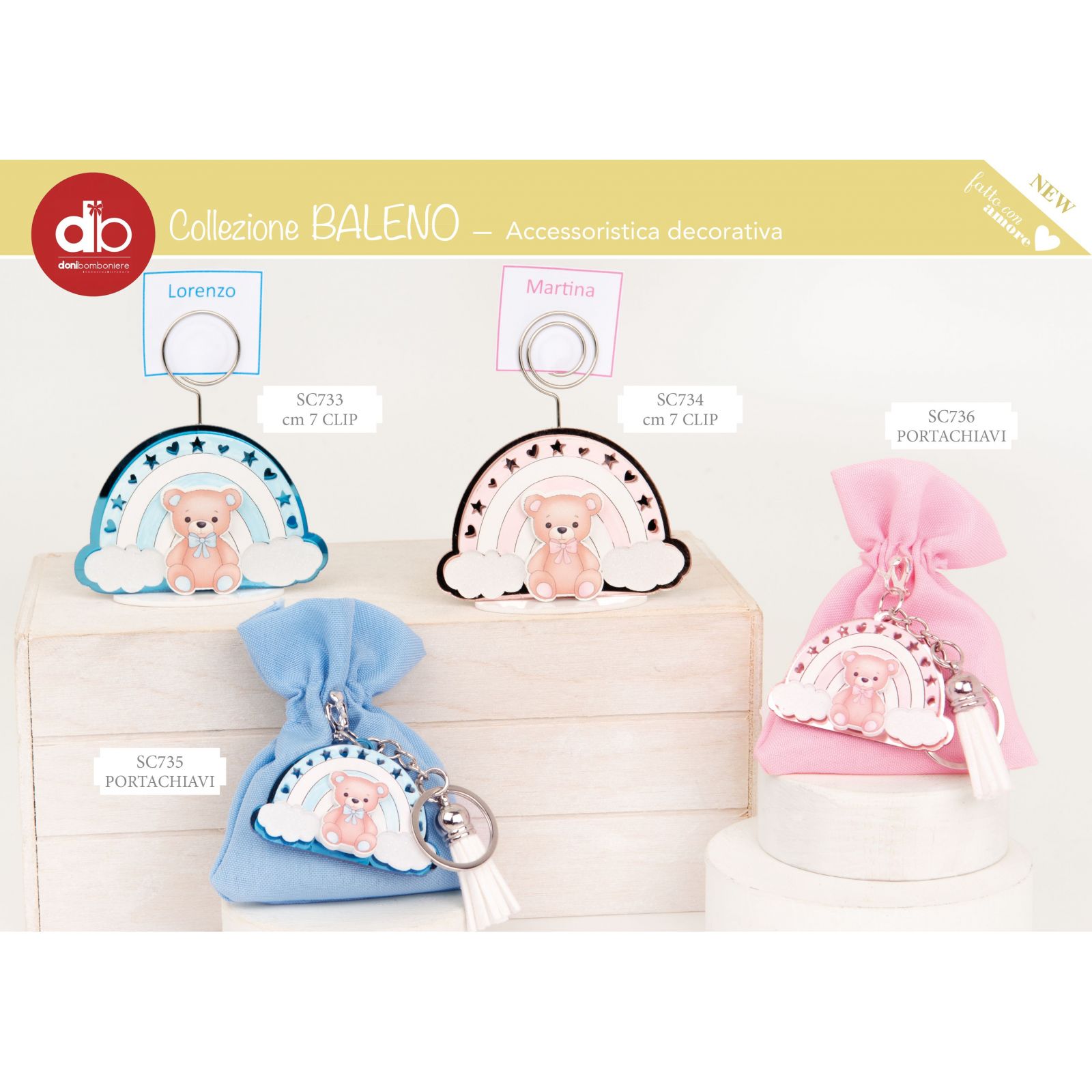 Il colore celeste e il design delicato rendono questa bomboniera adatta per un bimbo, sia maschietto che femminuccia, e sarà sicuramente apprezzata dai vostri ospiti. Oltre ad essere un pensierino carino e originale, il portachiavi può essere utilizzato come segnaposto o gadget da tenere come ricordo di una giornata speciale.