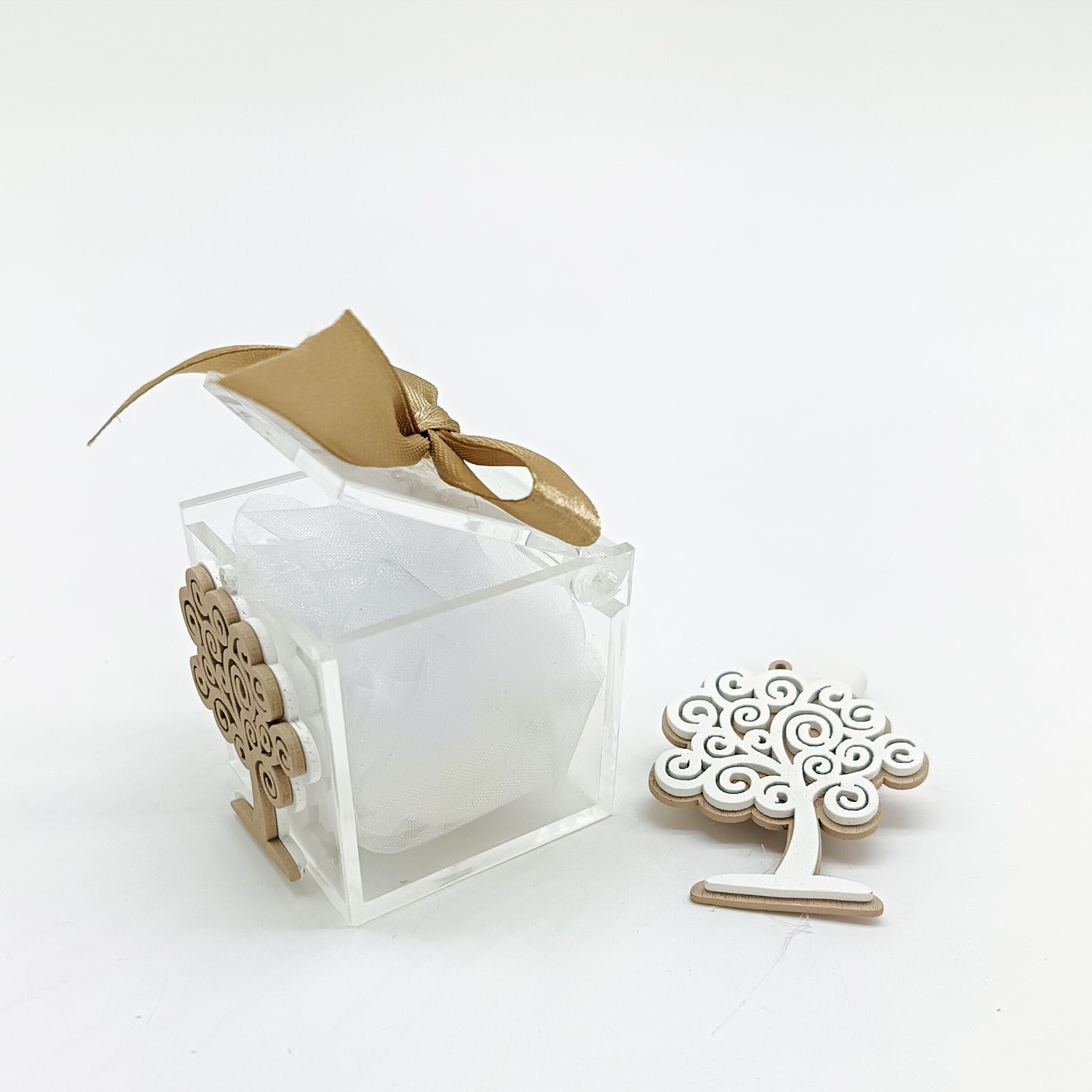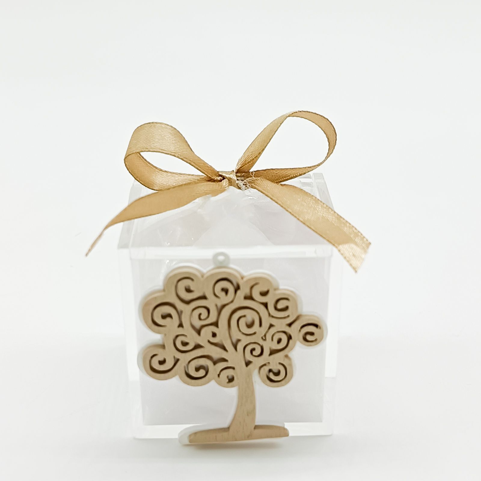Realizzata in plexiglass e legno, misura 5x5x5 cm con un’altezza di 5 cm per l’albero della vita, conferendo un equilibrio perfetto tra leggerezza e solidità, per un effetto naturale e sofisticato.