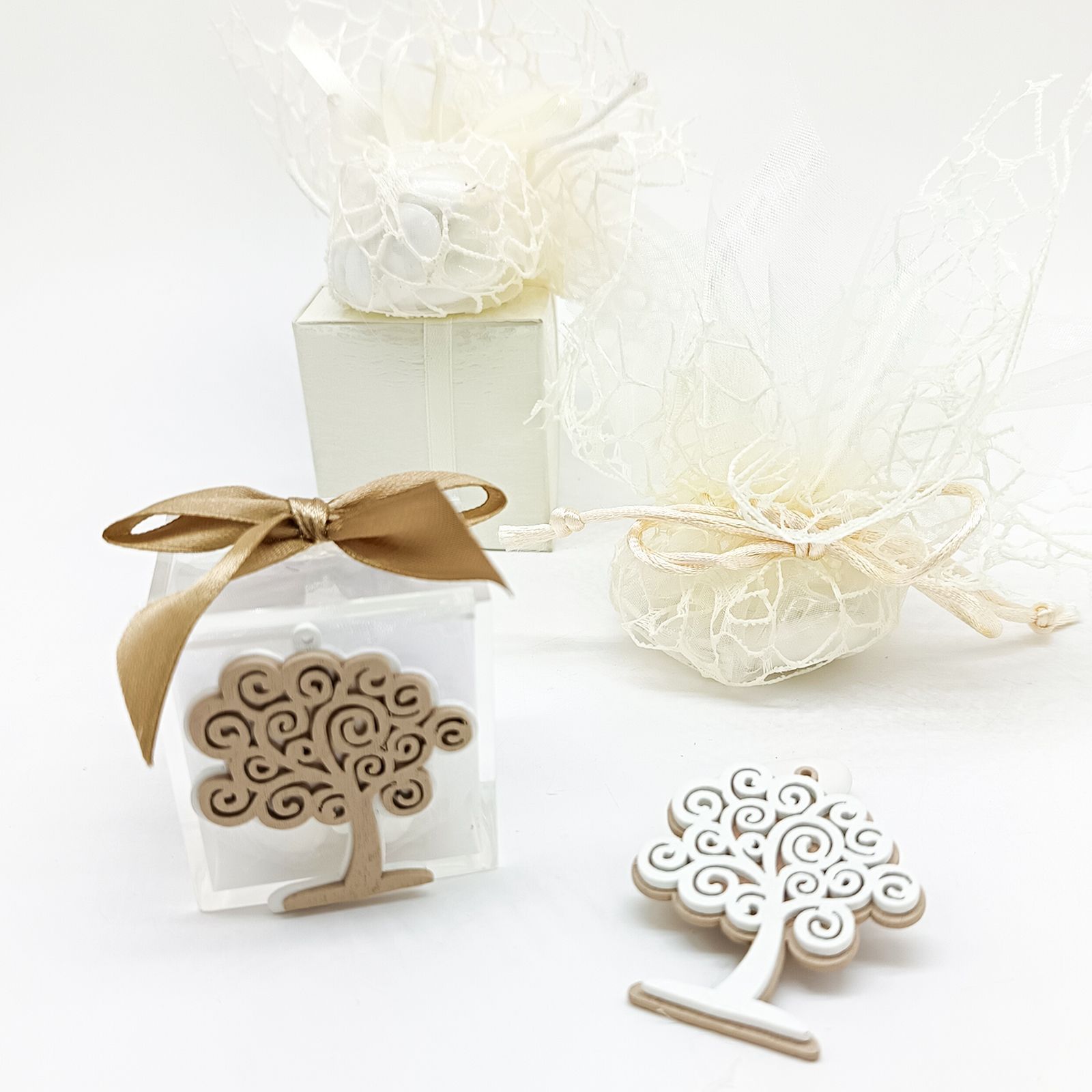 Raffinata scatolina portaconfetti con applicazione a forma di albero della vita, assortita in due eleganti varianti di colore: tortora e bianco. Perfetta per celebrare ogni occasione, dal battesimo al matrimonio, aggiungendo un tocco di significato e stile.
