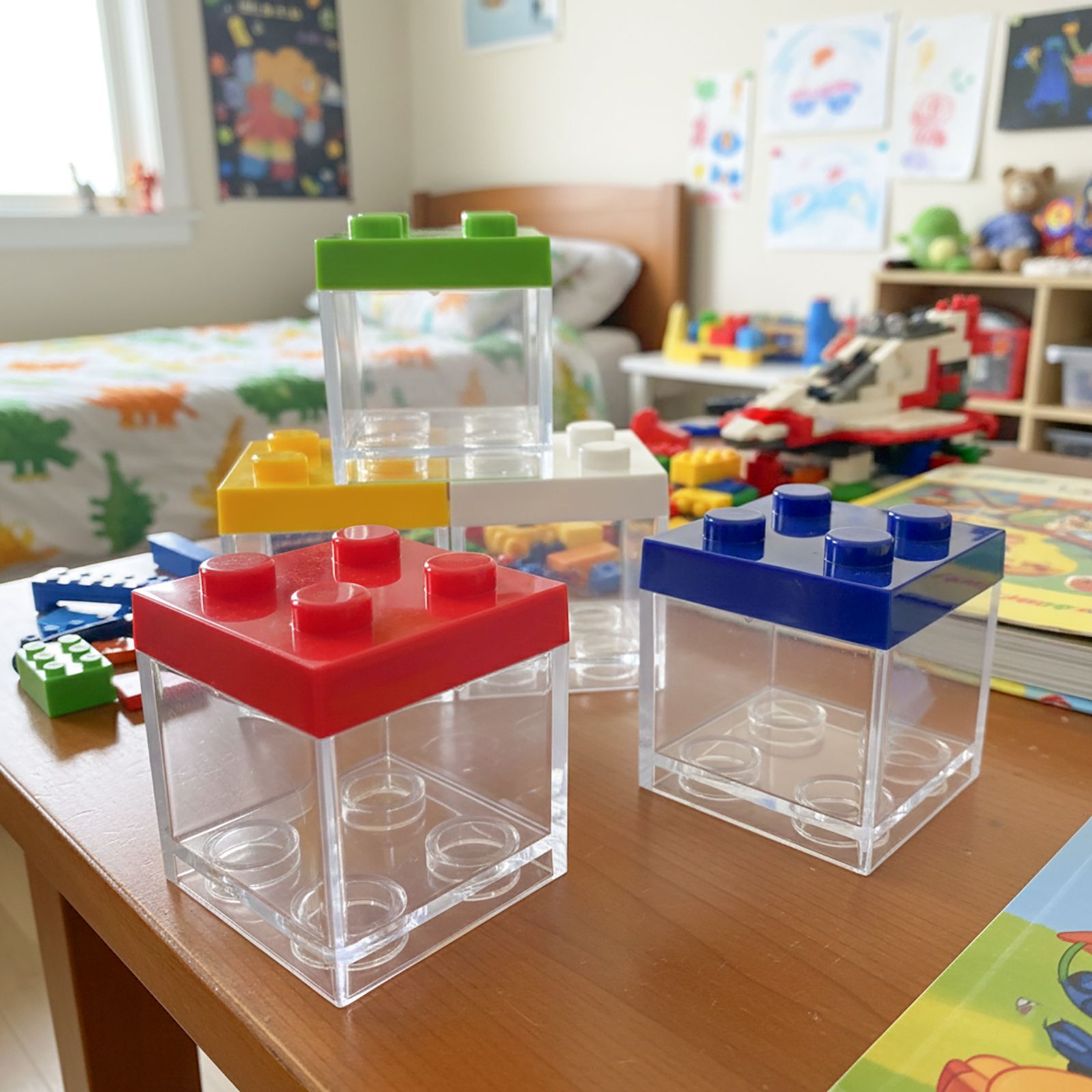 Ideale per nascita, battesimo e compleanno, si presenta con struttura trasparente in plexiglass e coperchio in plastica disponibile in cinque tonalità assortite: bianco, rosso, blu, giallo e verde. Un accessorio versatile che può diventare un colorato segnaposto o completare le tue bomboniere con un tocco giocoso.