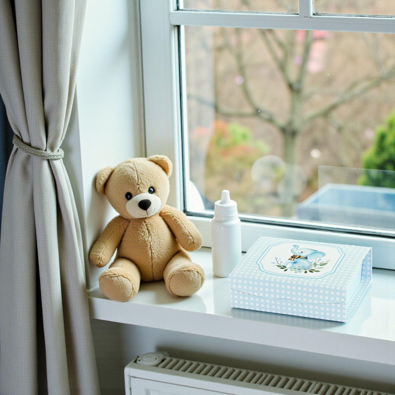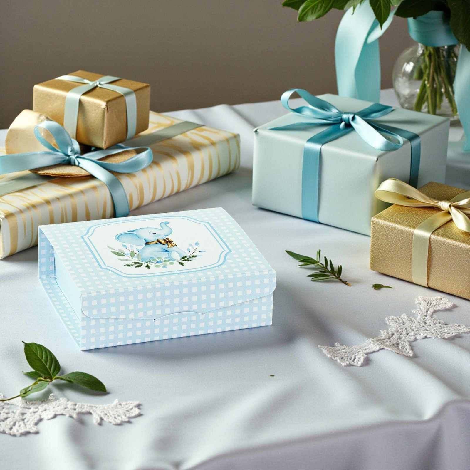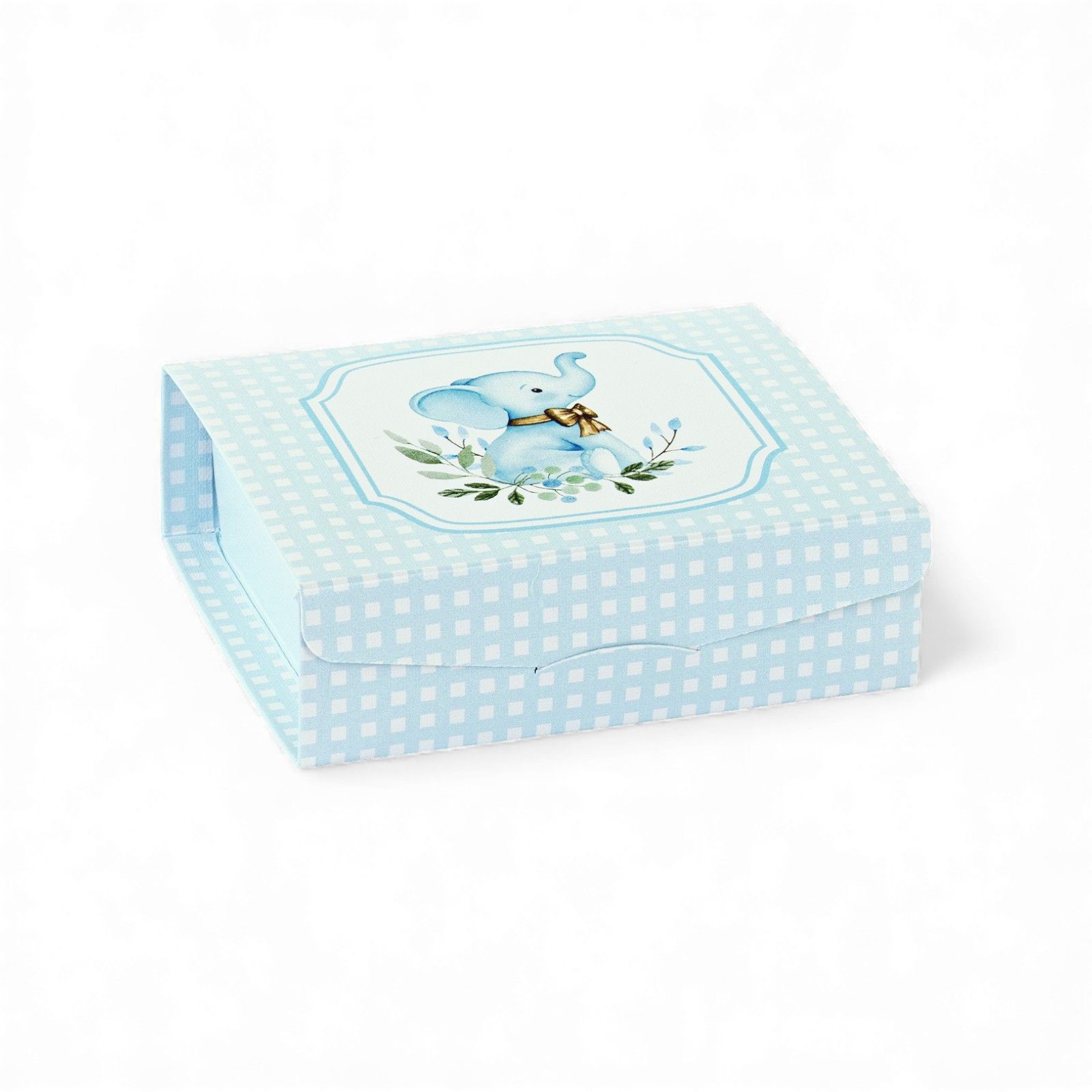 Adorabile e pratica, questa scatolina per confetti con simpatico elefantino celeste e fiocco è perfetta per nascita, battesimo, primo compleanno o baby shower. Ideale come confettata nascita bimbo, aggiunge un tocco dolce e giocoso alla tavola della festa, sorprendendo gli invitati con un piccolo pensiero originale.
