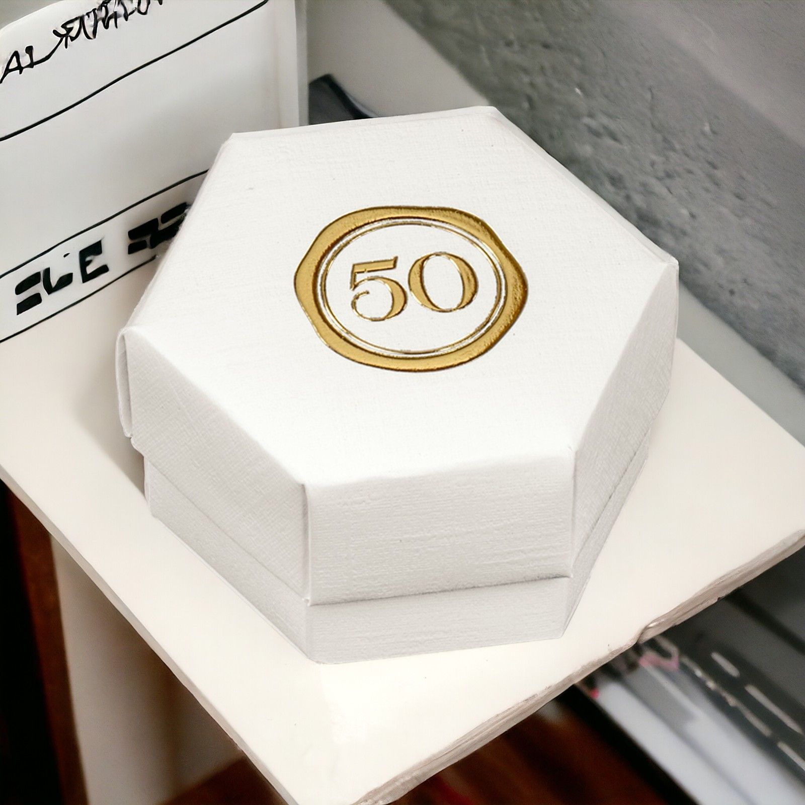 Scegli la nostra scatolina esagonale per un'opzione bomboniera economica, elegante e completa. Un modo originale di esprimere gratitudine e condividere la gioia delle nozze d'oro con un tocco di classe e stile.