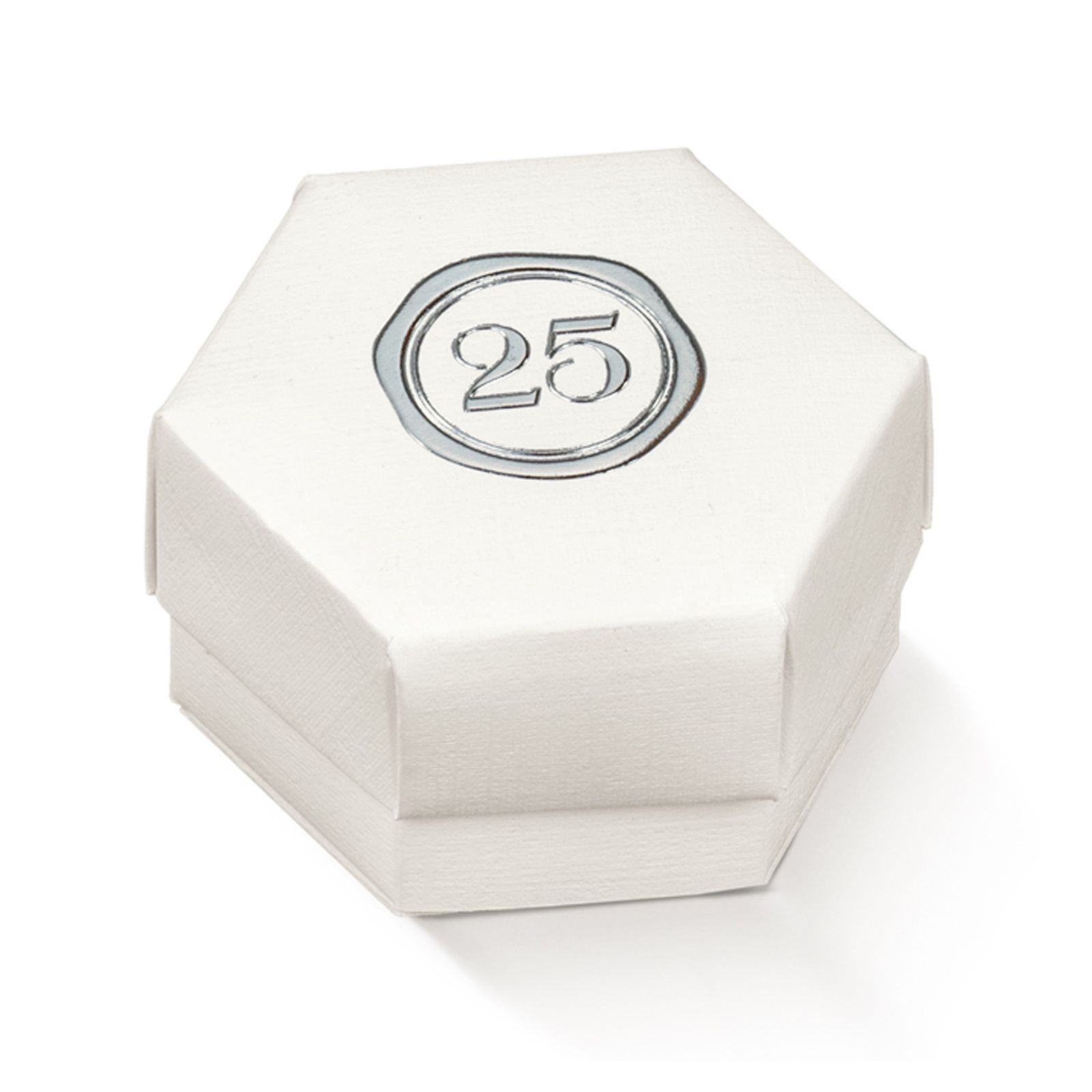 Rendi speciale il tuo anniversario di nozze argento con questa elegante scatolina esagonale, ideale per bomboniere o piccoli regali simbolici.