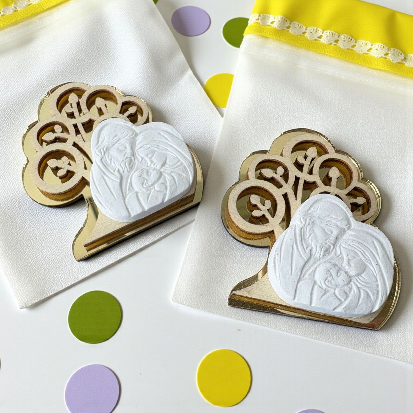Ogni volta che guarderanno questa bomboniera, ricorderanno il giorno speciale e la benedizione che accompagna la Sacra Famiglia. Scegli il nostro Magnete Albero con Sacra Famiglia per un regalo che non è solo un oggetto, ma un messaggio di amore eterno e unità.
