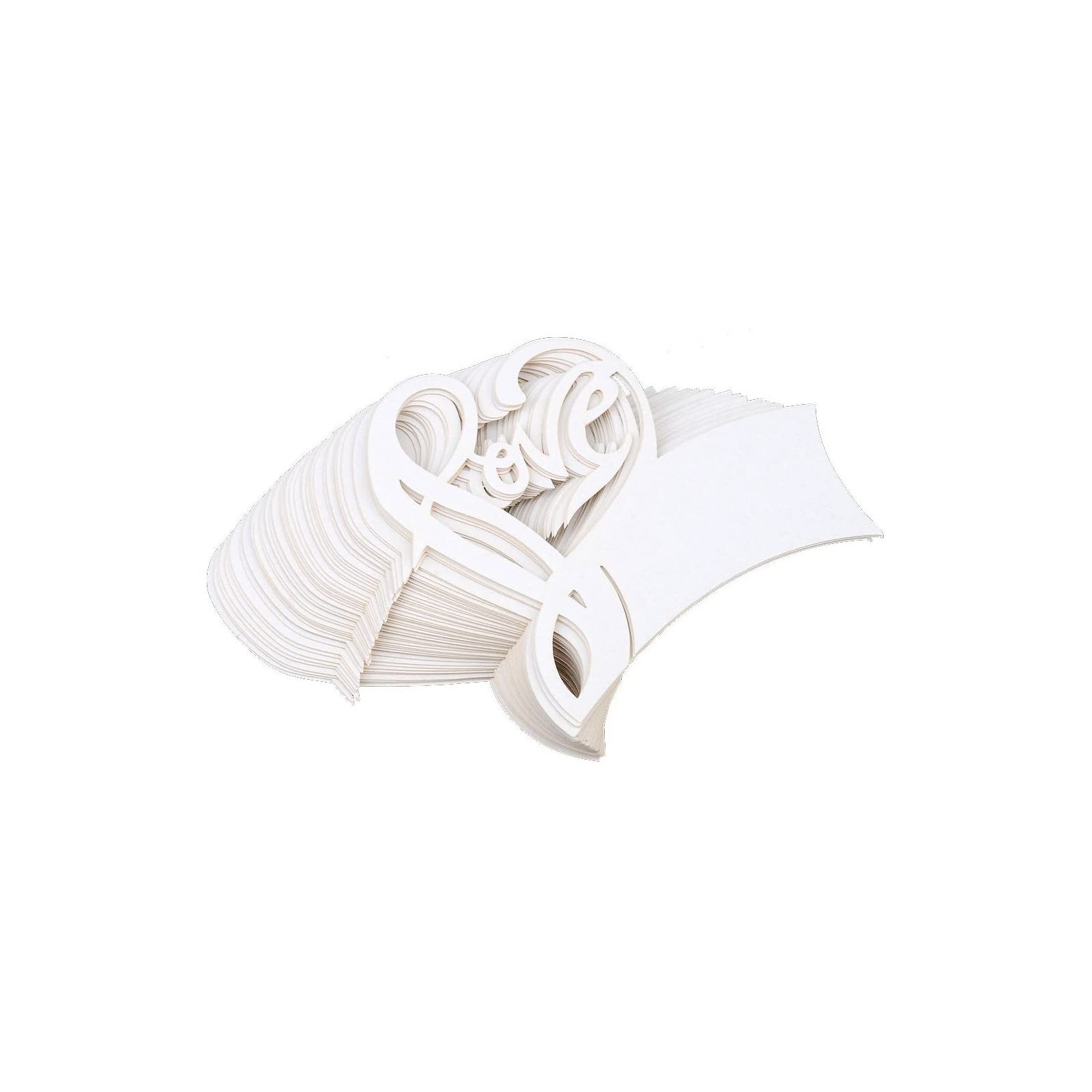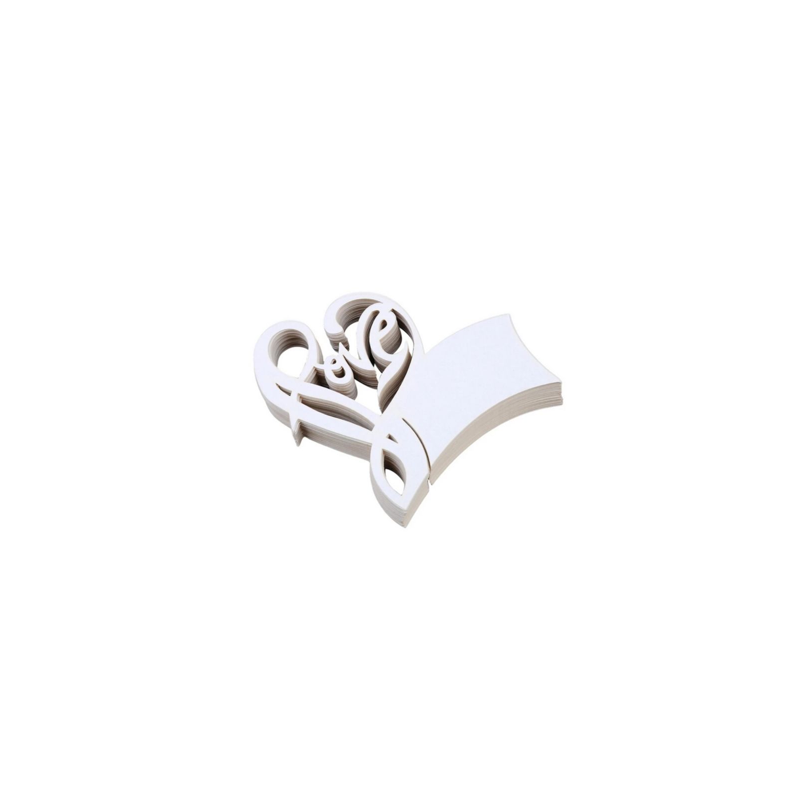 Stupisci i tuoi invitati con questi eleganti segnabicchieri matrimonio in cartoncino bianco a forma di cuore, con incisione laser che forma all'interno la parola "Love" con accanto un piccolo spazio bianco, utile per scrivere il nome dei tuoi invitati.