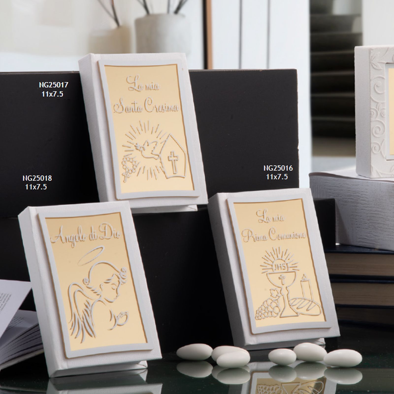 La bomboniera Vangelo con placchetta è adatta sia per maschi che per femmine, grazie alla sua versatilità e al suo significato universale. Ogni confezione include una scatola regalo, rendendo ancora più speciale il momento della consegna.