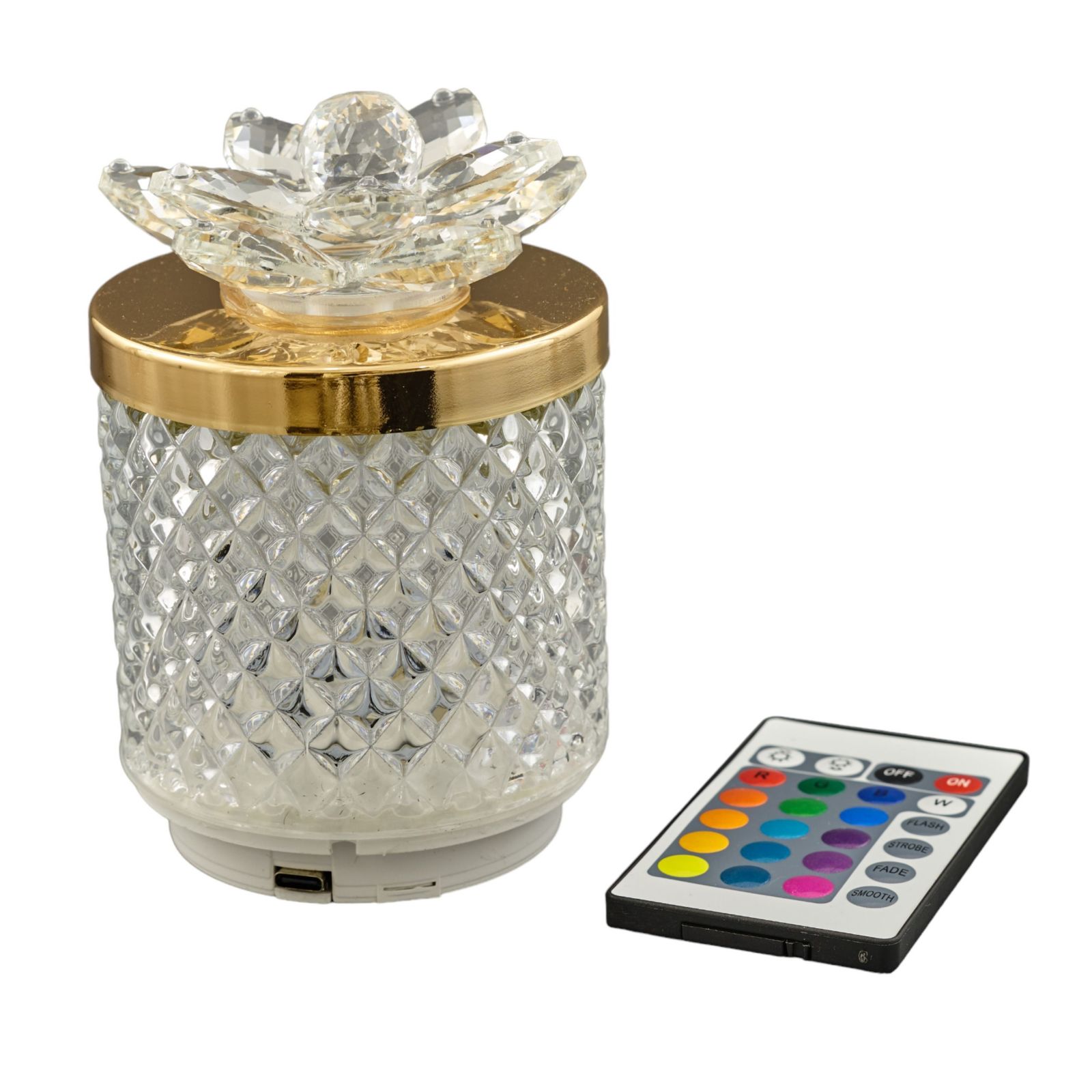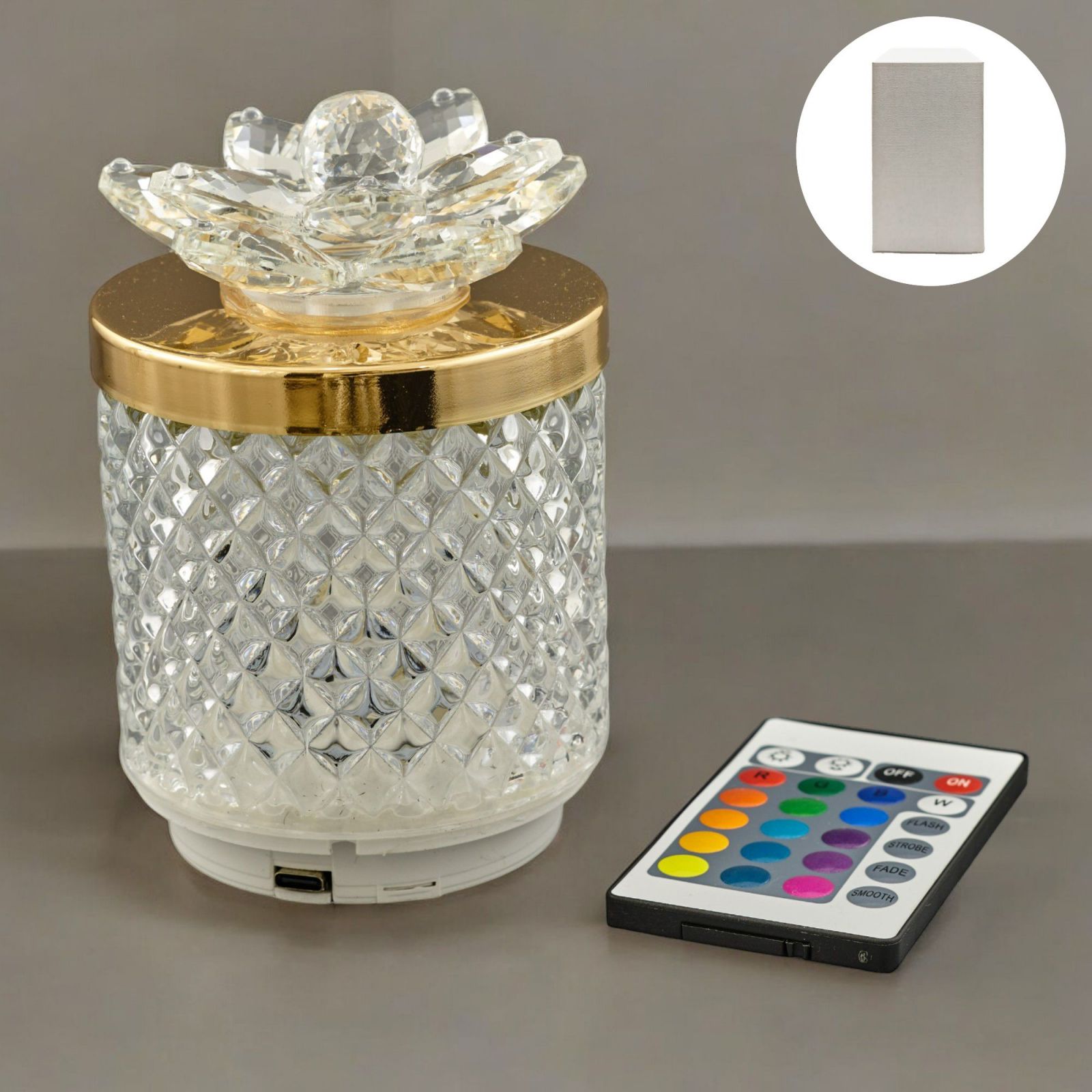 Con la sua luce RGB e il telecomando per cambiare il colore, questa bomboniera sarà apprezzata da tutti i tuoi ospiti. Il fiore trasparente e il coperchio oro aggiungono un tocco di classe e raffinatezza, mentre la scatola regalo inclusa nel prezzo la rende ancora più speciale.