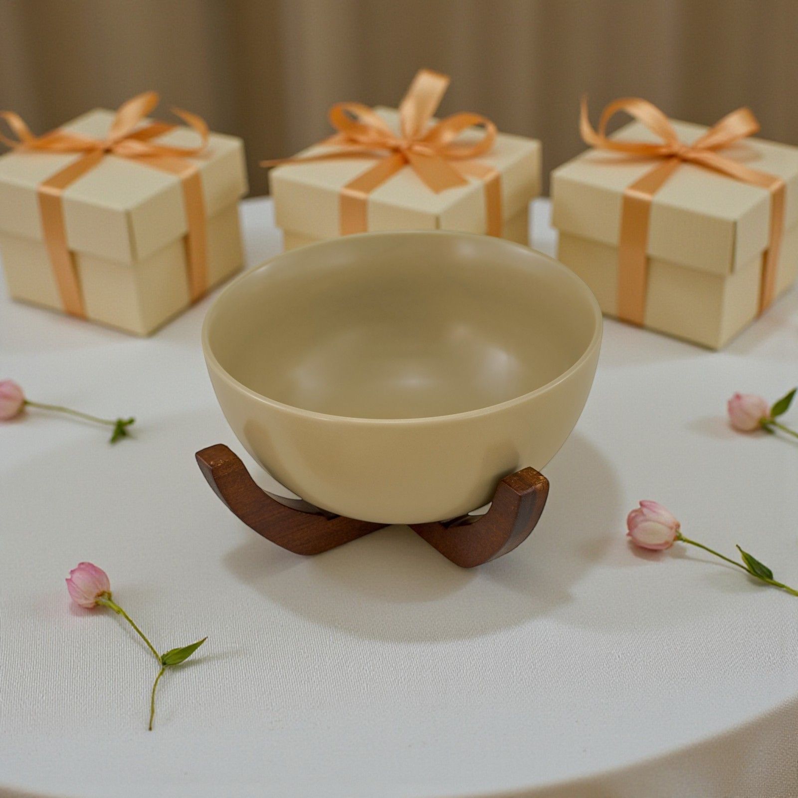 Elegante e raffinata, la nostra bomboniera esclusiva è una splendida ciotola color tortora con base in legno a croce. Questo elegante elemento non è solo un accessorio per la tua cucina, ma un simbolo di amore e condivisione, perfetto per celebrare un giorno speciale come il matrimonio. Ogni volta che i tuoi ospiti la utilizzeranno, ricorderanno il momento magico del vostro sì.